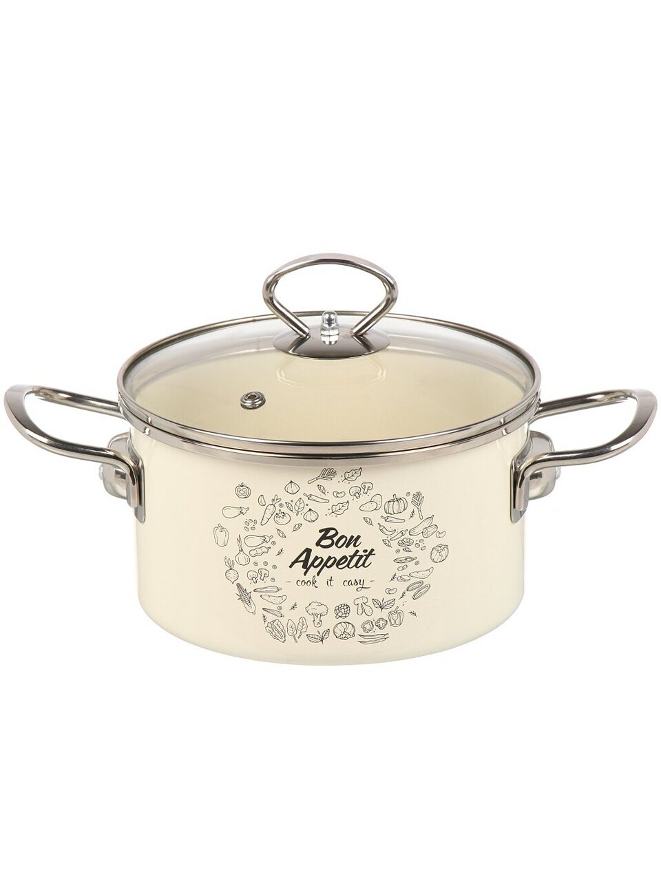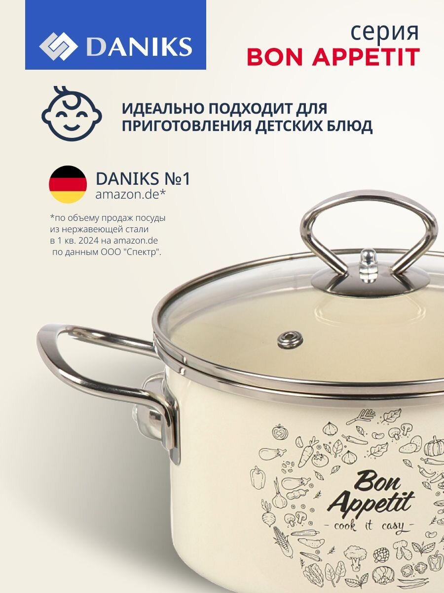 Кастрюля Daniks Bon Appetit 2 л: идеальный выбор для индукционных плит, безопасное стекло, долговечная эмаль — готовьте любимые блюда легко и удобно.