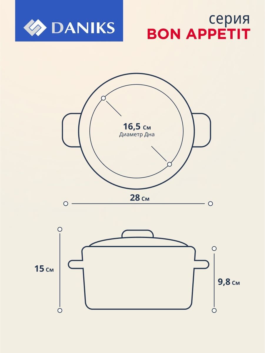 Эта модель легко справляется с приготовлением супов, каш, пюре и других блюд для небольшой семьи. В отличие от посуды с антипригарным покрытием, эмалированная сталь не требует особого ухода и служит дольше. Кастрюля не подходит для посудомоечной машины, что важно учитывать при выборе. Как использовать кастрюлю Daniks Bon Appetit? Просто налейте воду, добавьте ингредиенты и контролируйте процесс через прозрачную крышку — всё под контролем!