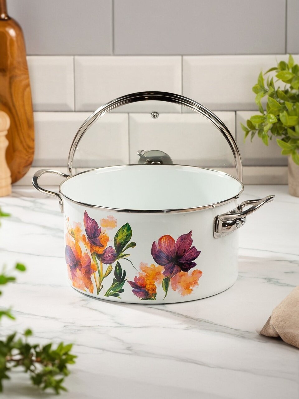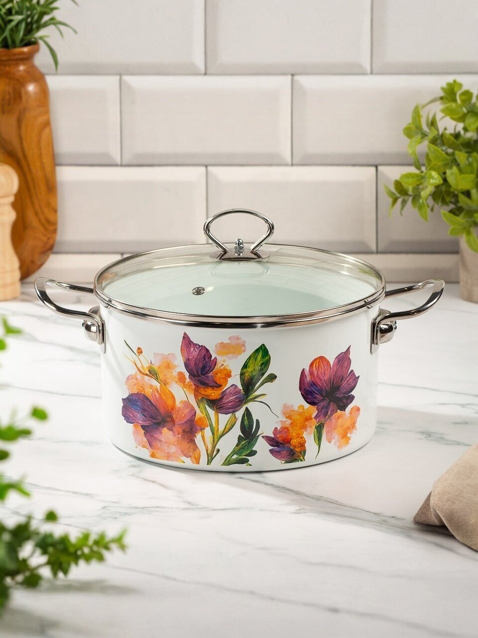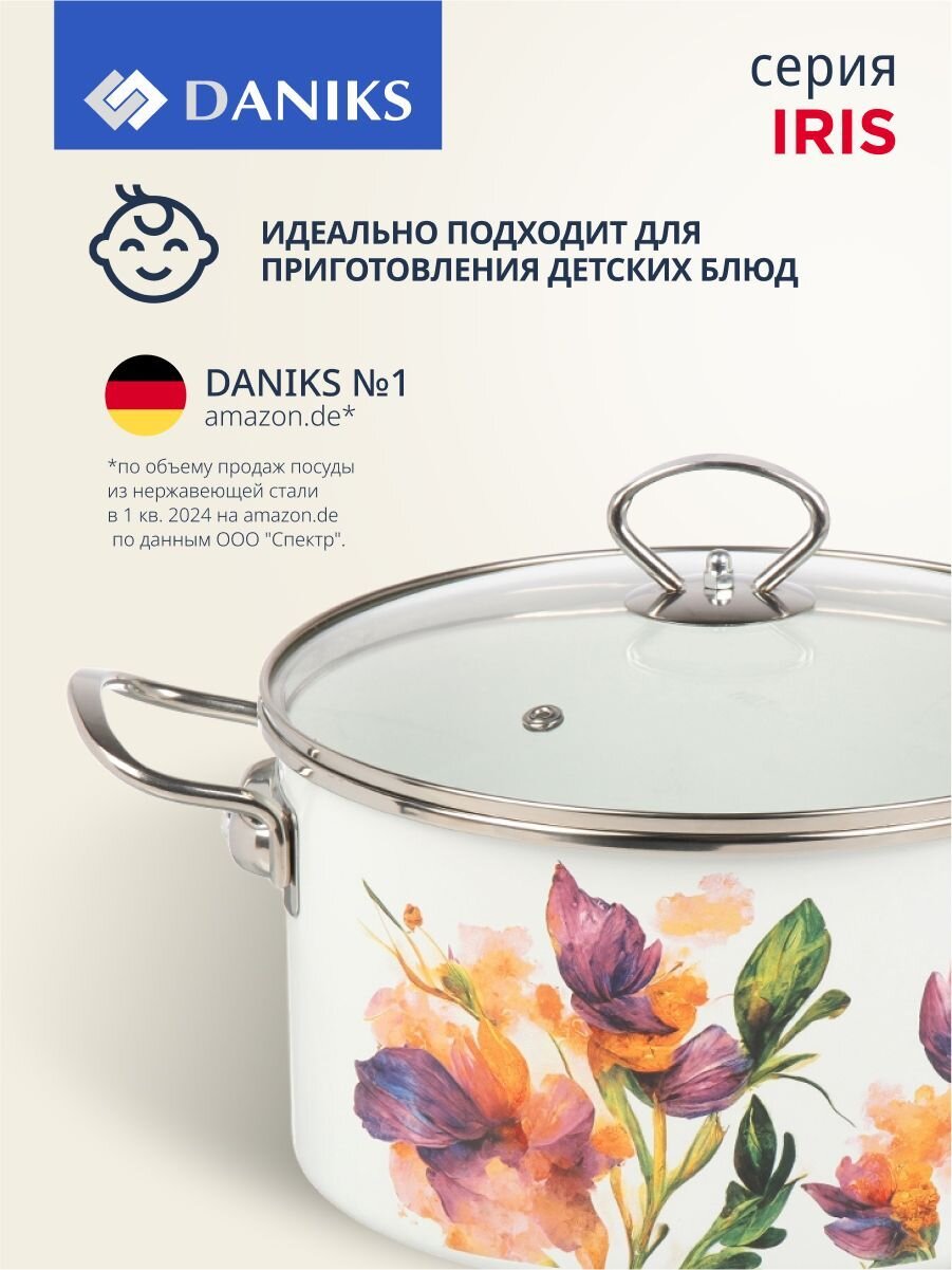 Кастрюля Daniks Iris 5 л — универсальное решение для индукции и любых плит: прочная эмалированная сталь, стеклянная крышка, современный дизайн для кухни и дачи.