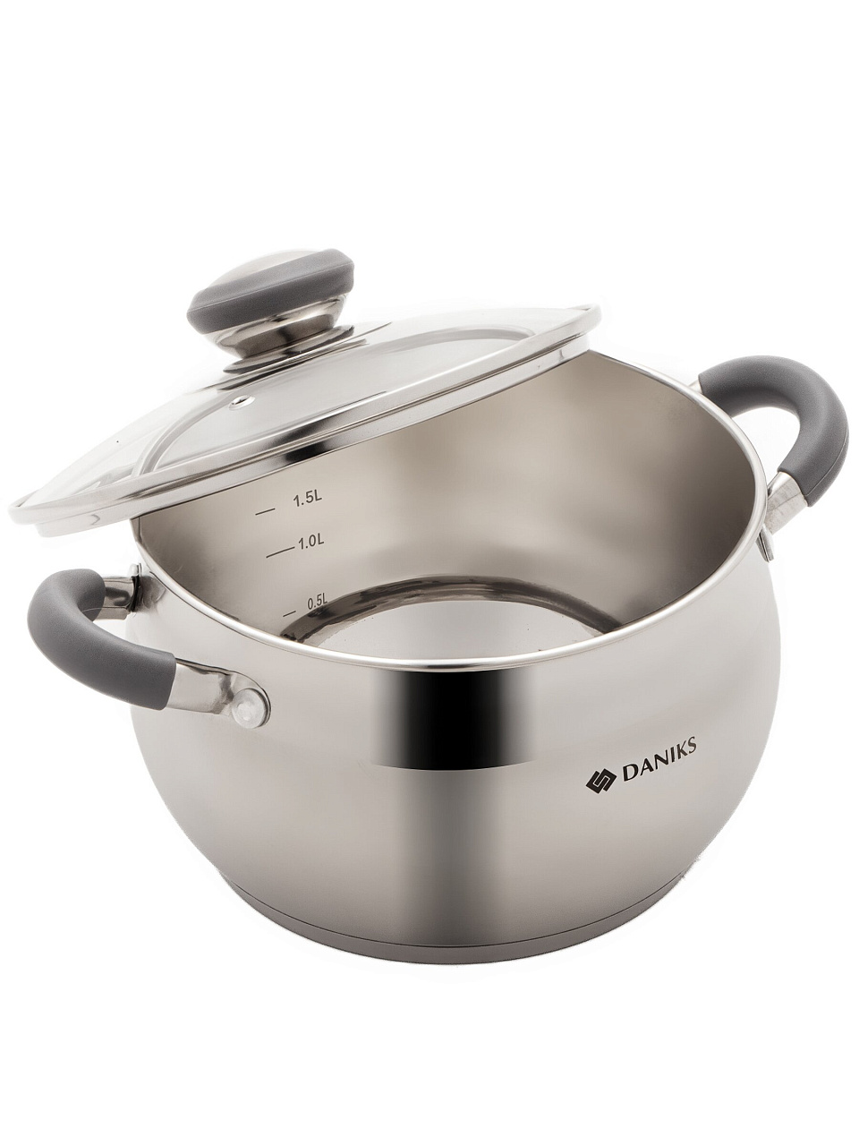 Кастрюля Daniks Модерн серый 2.9 л — идеальное решение для индукционных плит: долговечная нержавеющая сталь, стеклянная крышка, мерная шкала и универсальный размер для дома и дачи.