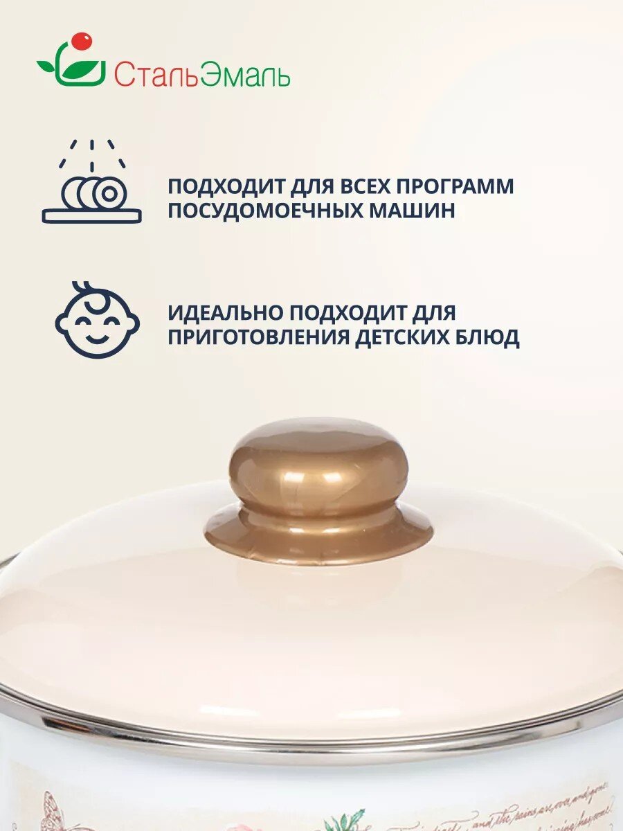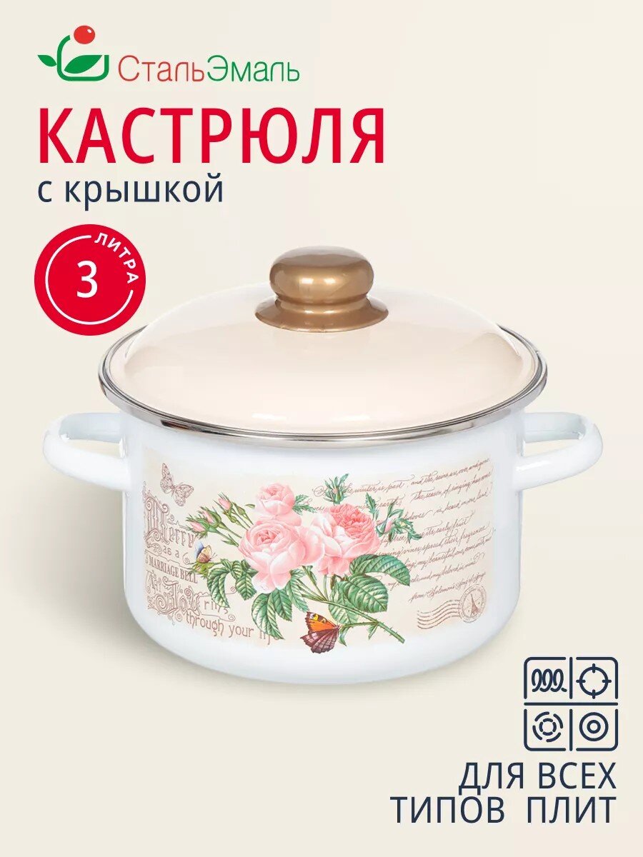 Эмалированная кастрюля 3 л СтальЭмаль Мэри: универсальная посуда для индукции и любых плит — легко готовьте супы, каши и макароны без хлопот.