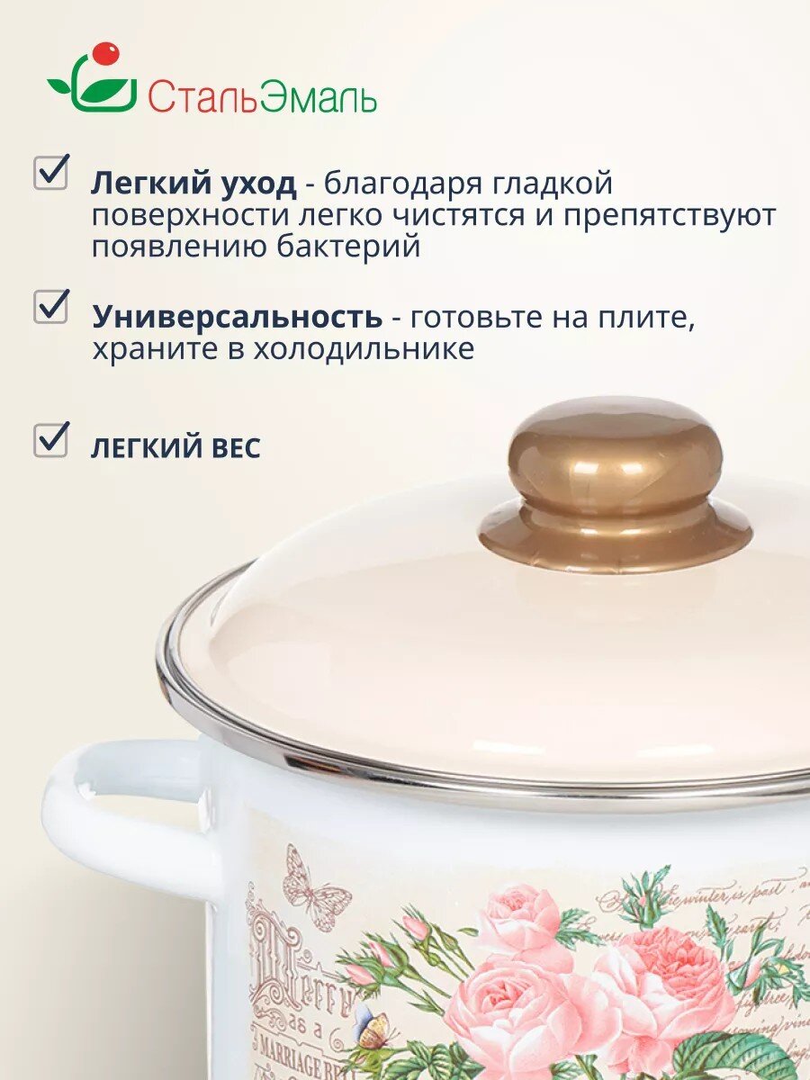 Закажите эмалированную кастрюлю СтальЭмаль Мэри 3 л прямо сейчас и получите универсальную посуду для любых блюд с гарантией качества и быстрой доставкой.