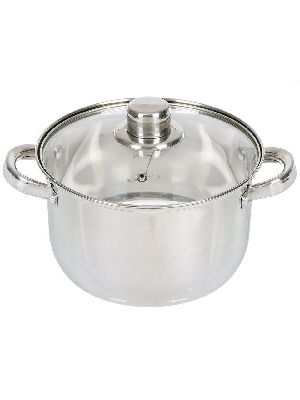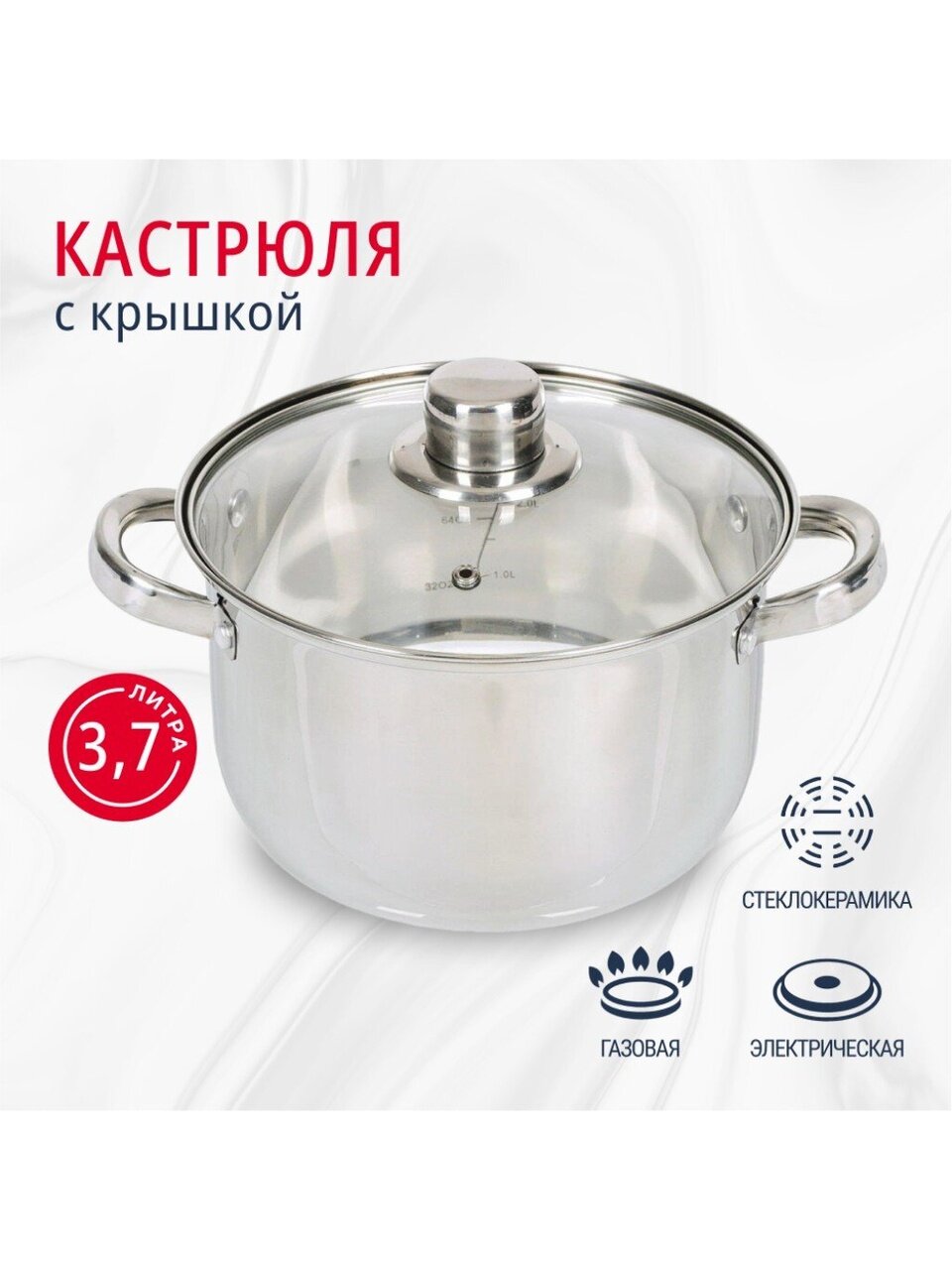 Кастрюля из нержавеющей стали 3.7 л с мерной шкалой и стеклянной крышкой: идеальный выбор для ежедневной готовки дома и на даче, долговечность по доступной цене.