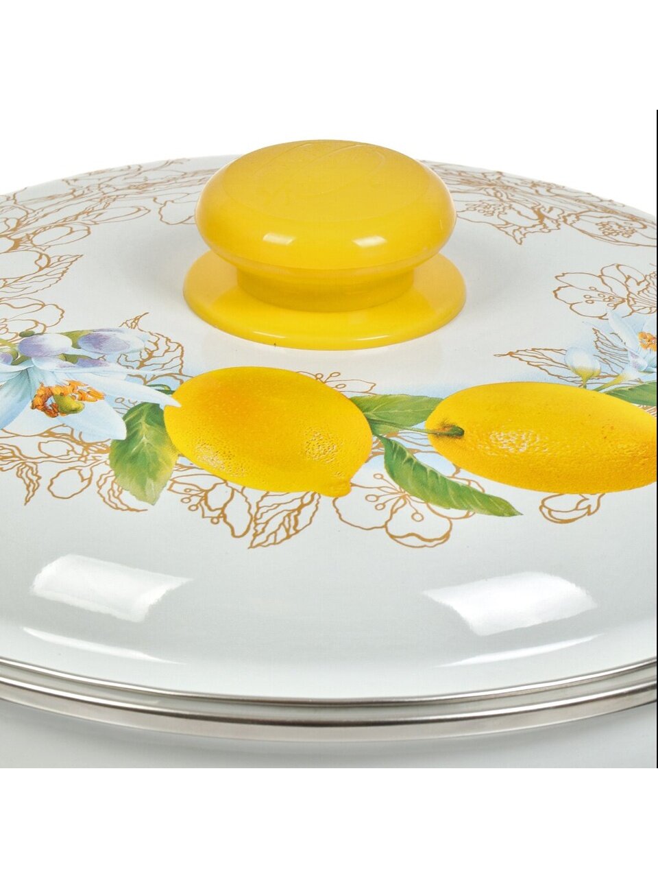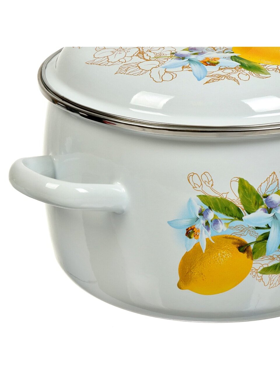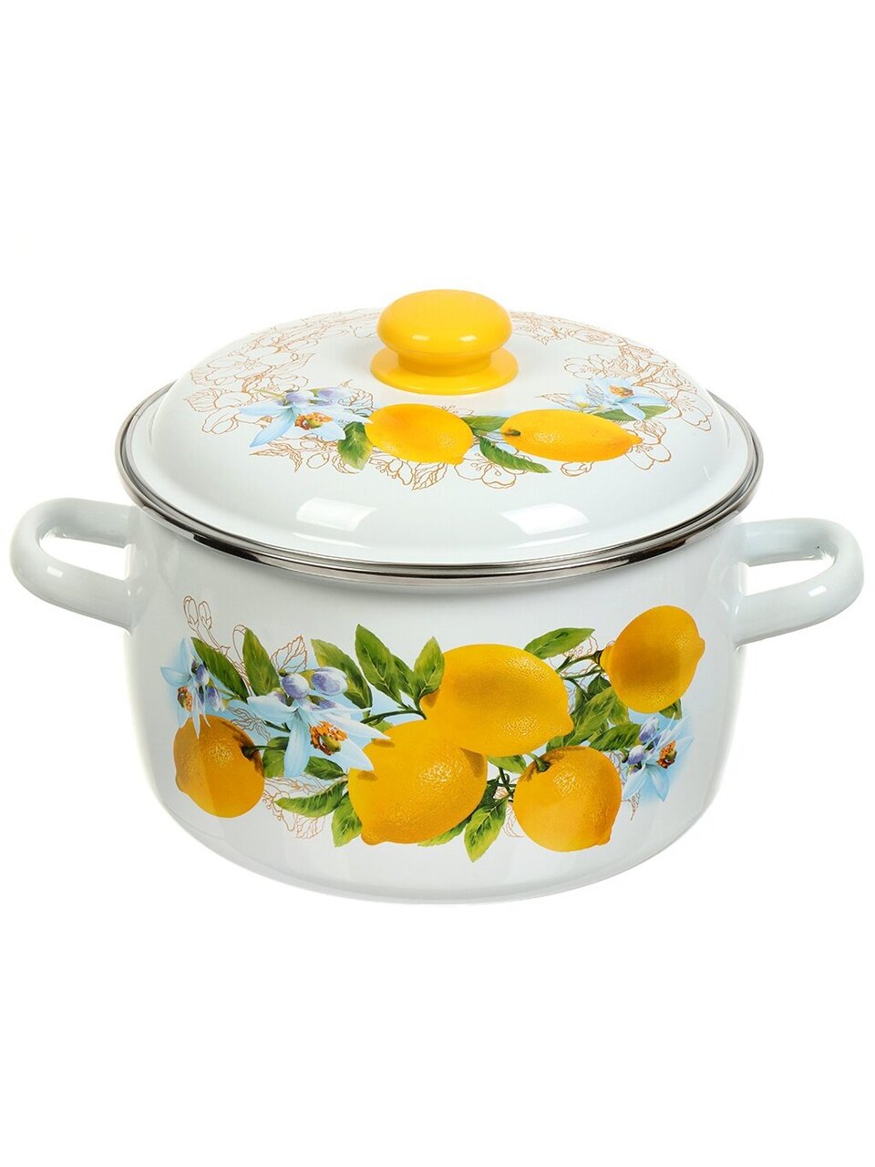 Эмалированная кастрюля 5.5 л «Лимоны» для индукции — безопасная сталь, долговечность 24 мес, идеальна для семьи и дачи. Готовьте без хлопот!