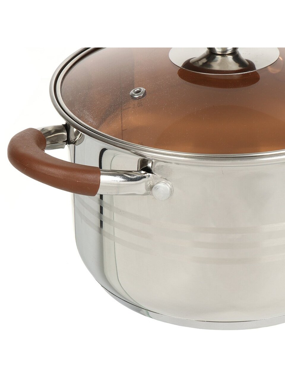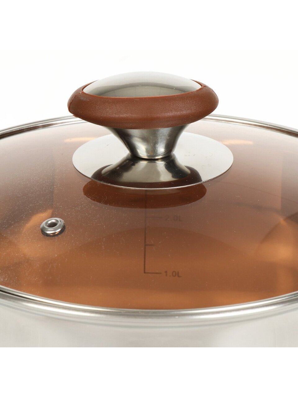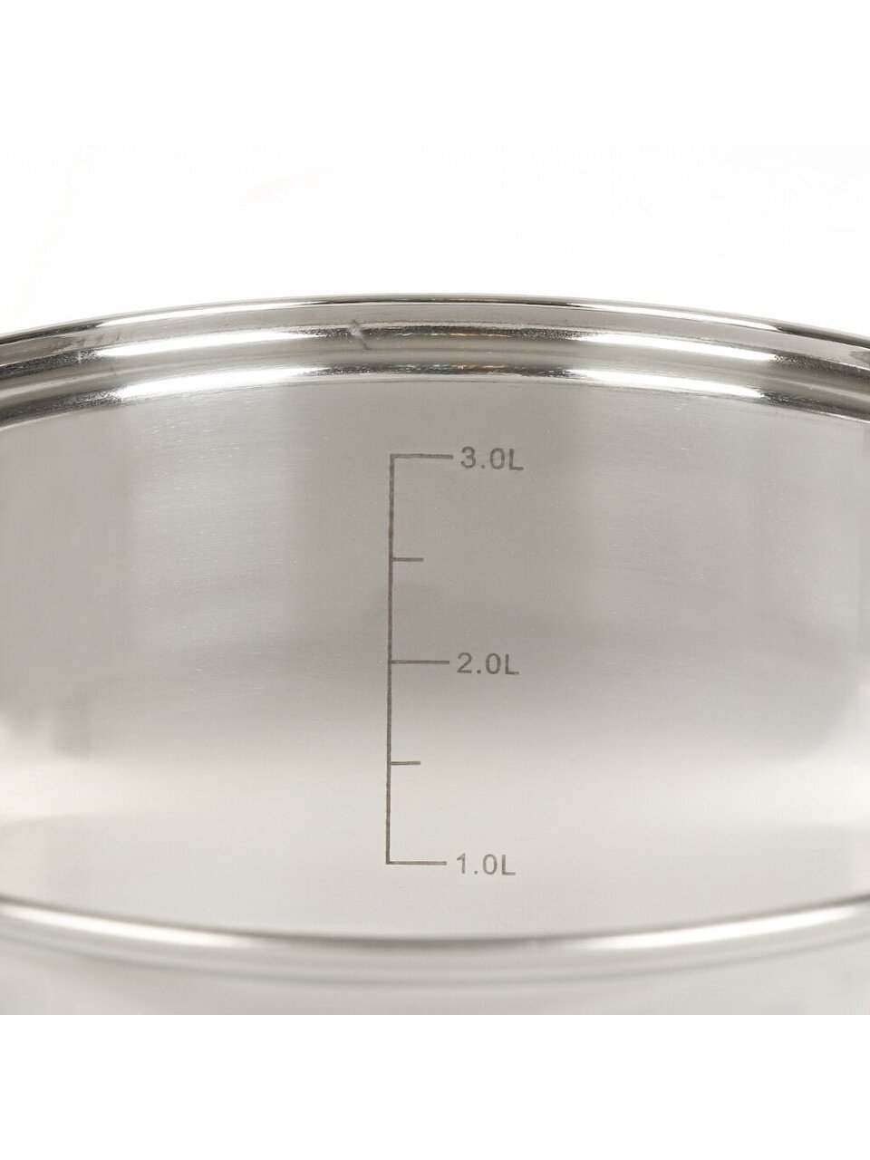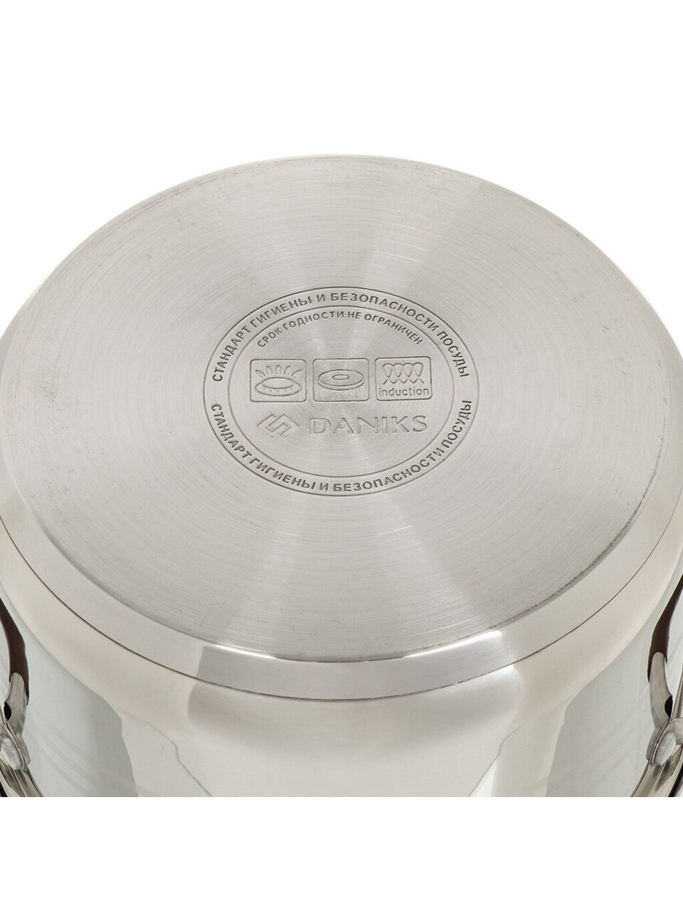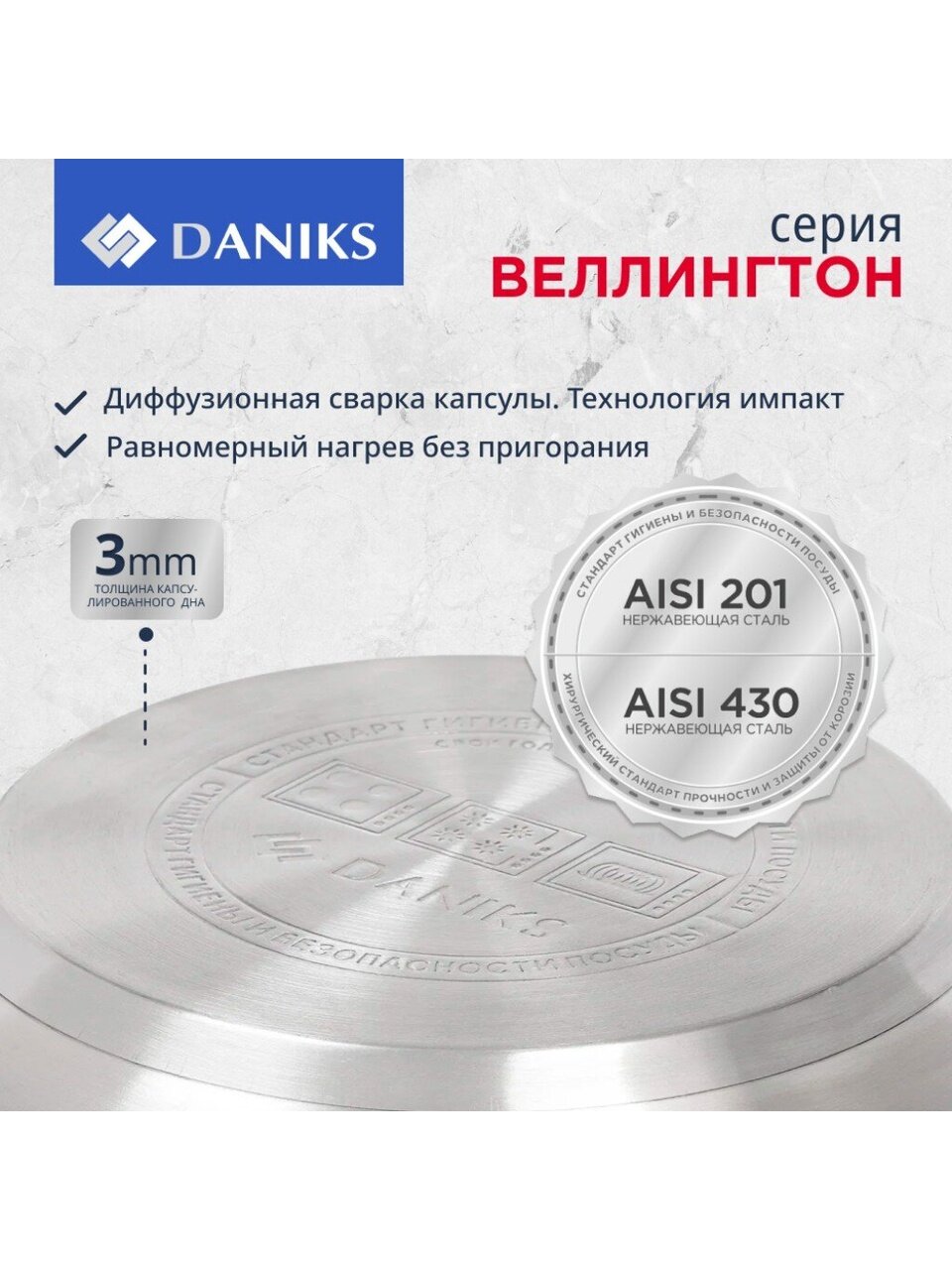 Кастрюля Daniks Веллингтон 3.8 л из нержавеющей стали с капсульным дном: идеальный выбор для индукционных плит, удобная мерная шкала, стеклянная крышка.