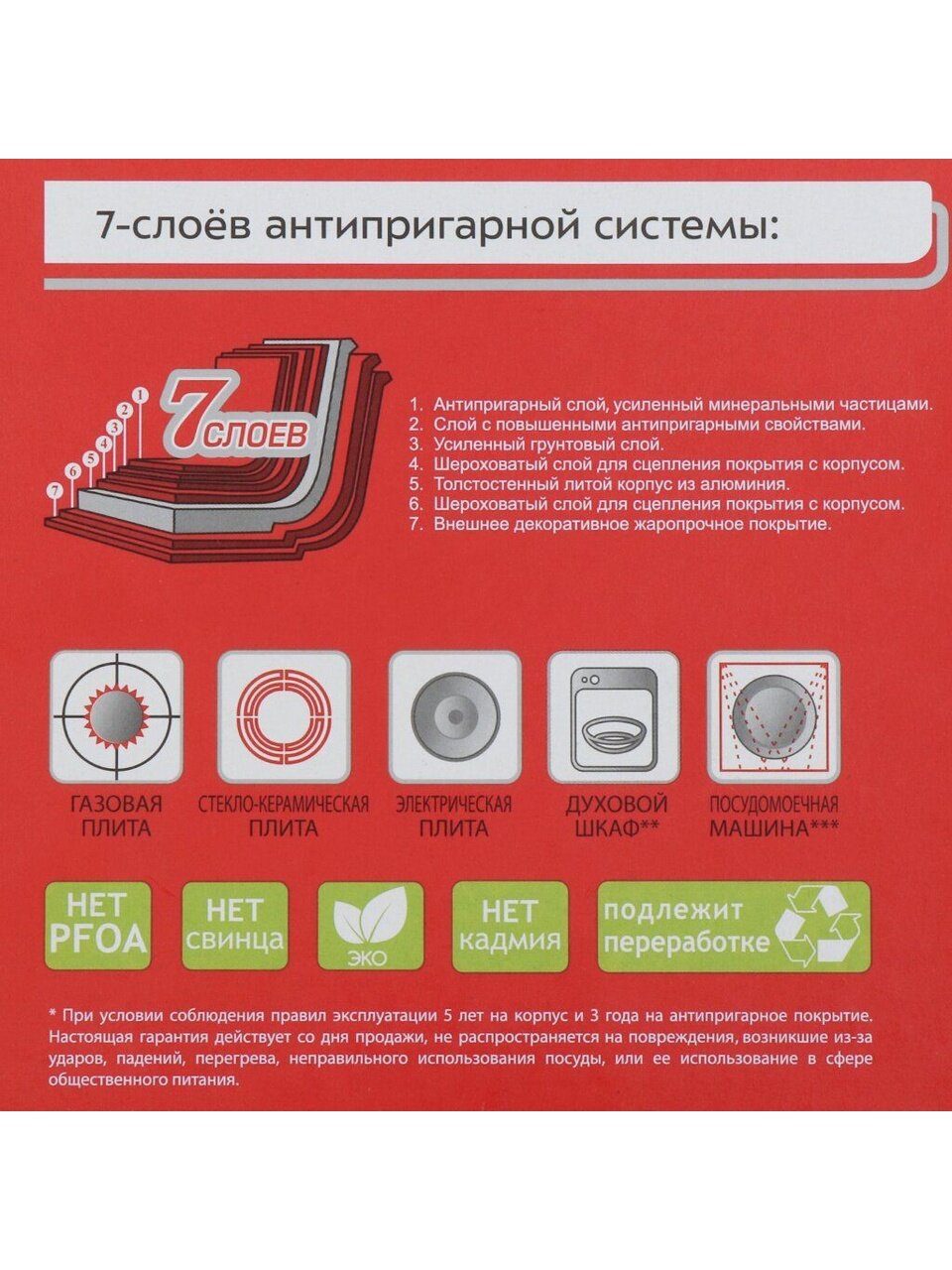- Гранитное антипригарное покрытие — пища не прилипает, легко мыть даже в посудомоечной машине