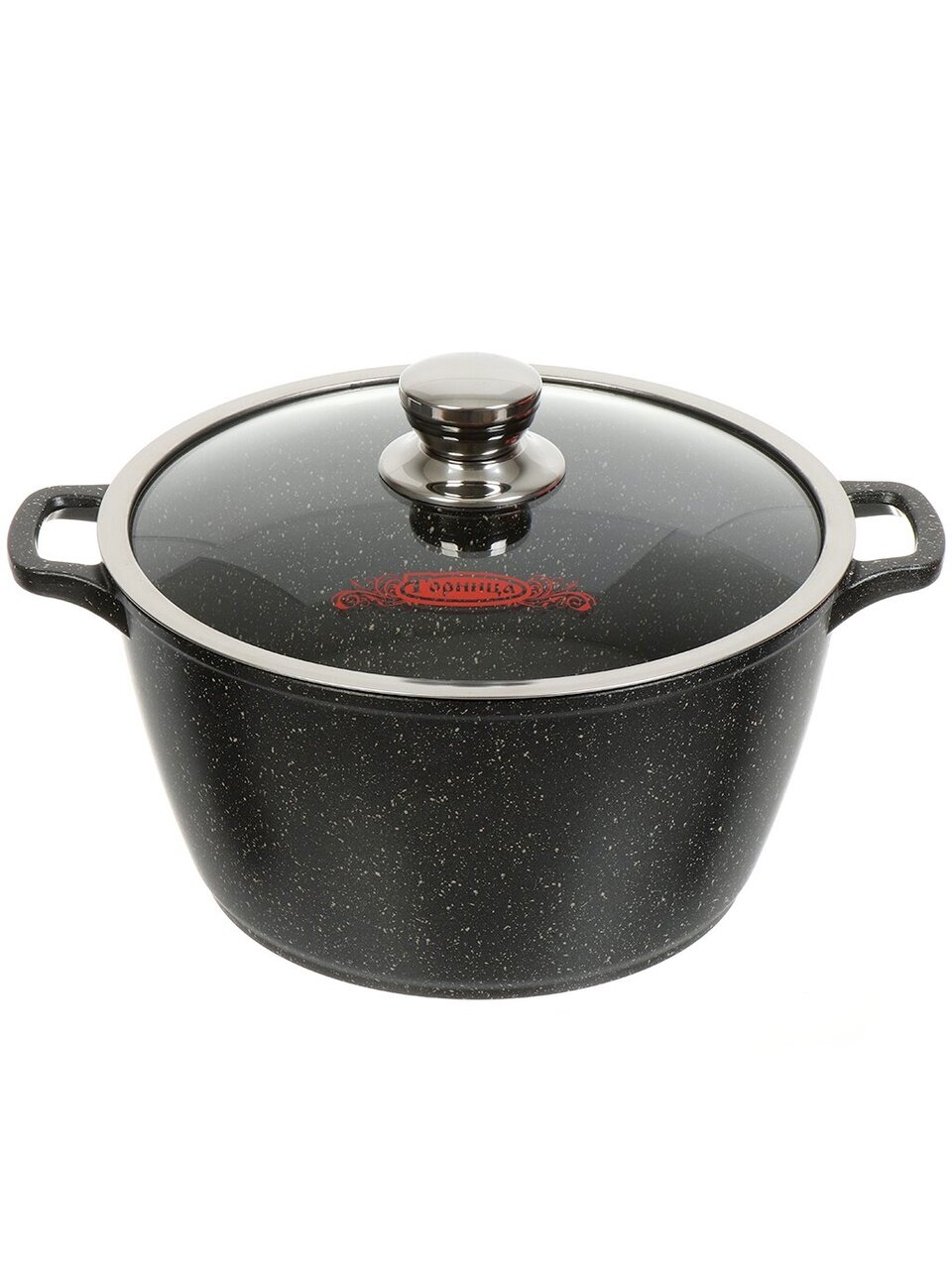 Кастрюля Горница Гранит 5 л: антипригарное покрытие, стеклянная крышка, оптимальный объем для семьи. Готовьте плов, суп или пасту — легко и без пригорания.