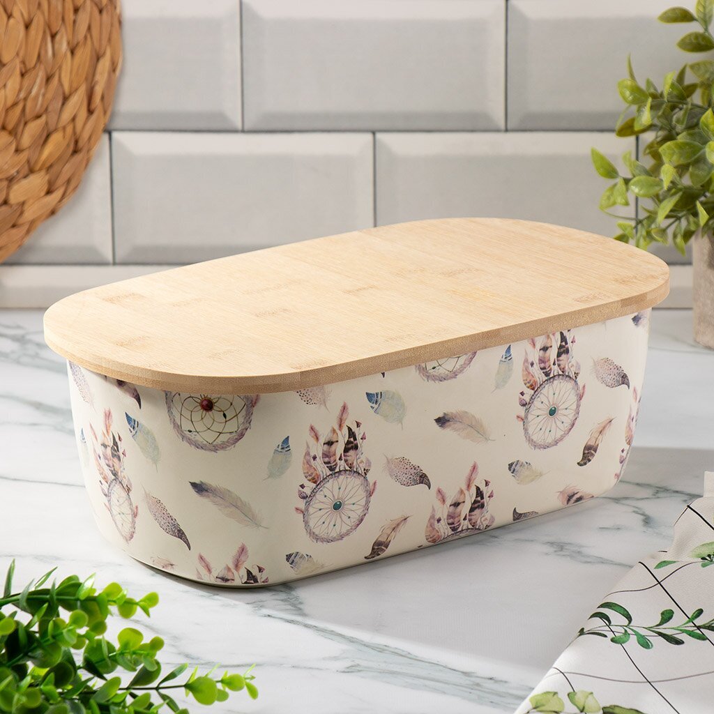 Хлебница представляет собой контейнер с крышкой. Прочная крышка, также служит разделочной доской. Хлебница выполнена из экологически чистого бамбукового волокна. Такие изделия имеют неоспоримые преимущества по сравнению с изделиями из других материалов. Она обладает природными антибактериальными свойствами, препятствует росту и размножению бактерий, не впитывает запахи.