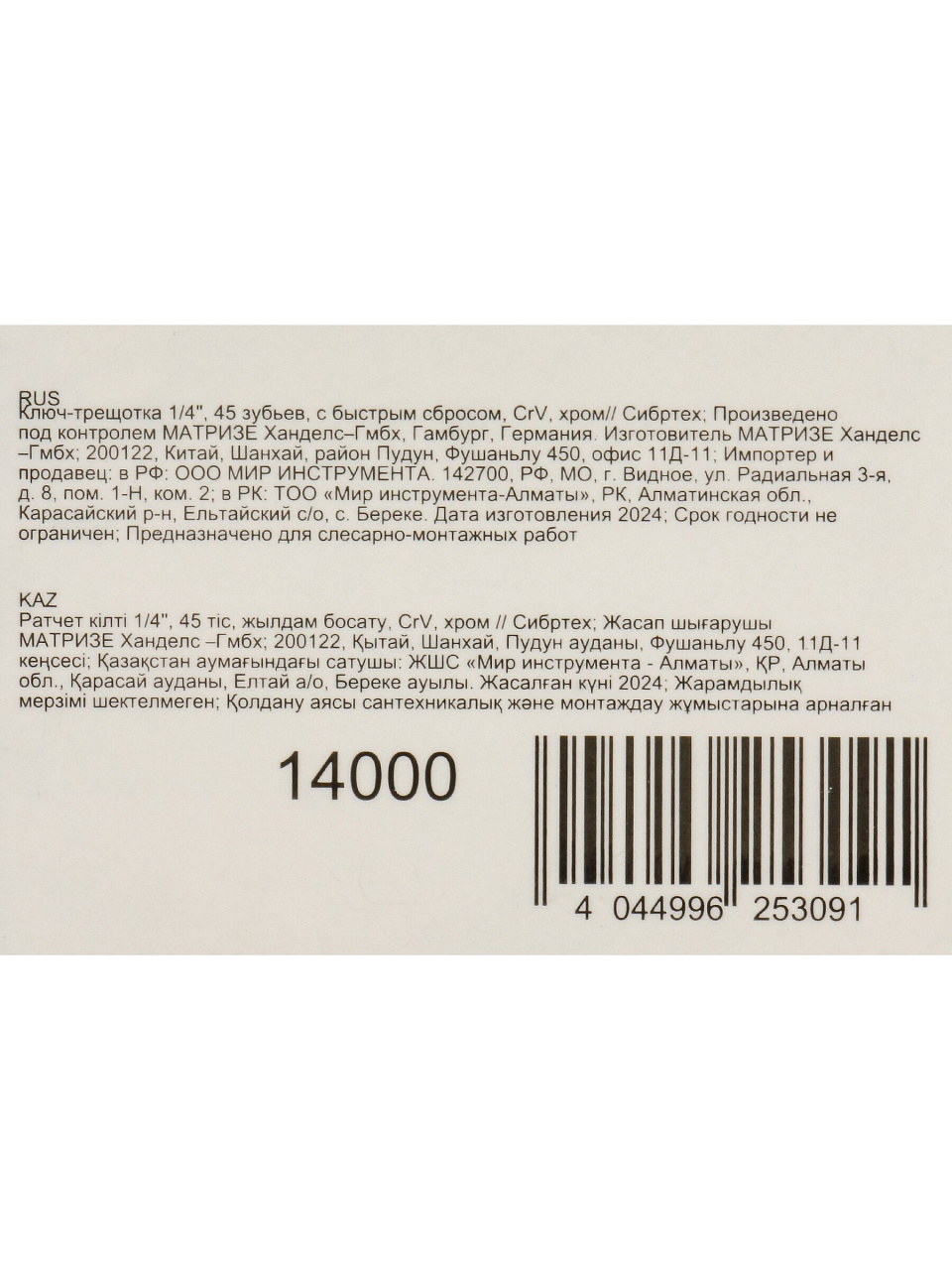 Вы можете приобрести «Ключ трещотка, Сибртех, 1/4 '', CrV сталь, с переключателем, 14000» и другие товары в нашем интернет-магазине в Армавире по низким ценам и с бесплатным самовывозом.