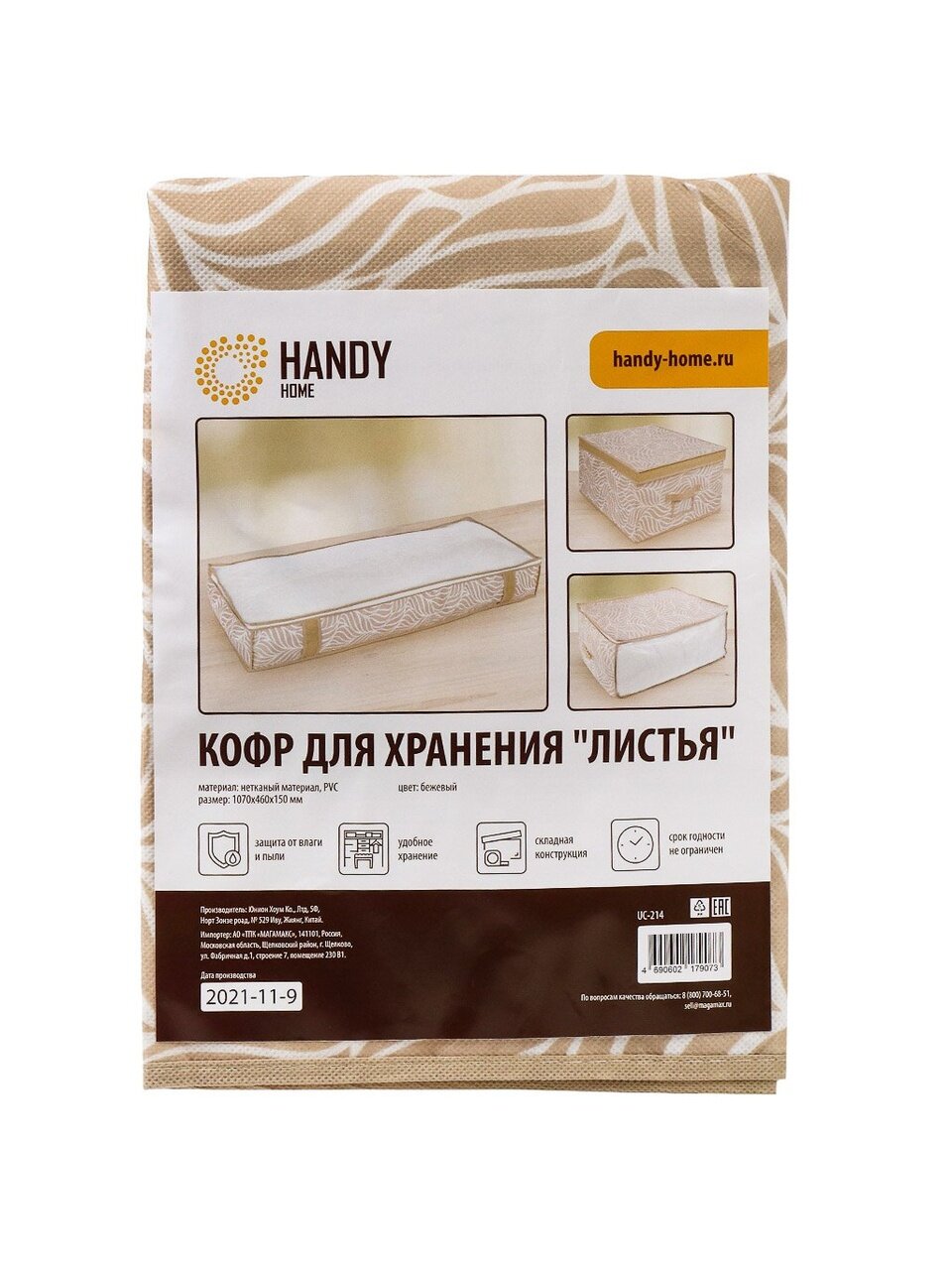 Кофр для хранения, с крышкой, складной, 107х46х15 см, с молнией, бежевый, Листья, UC-214