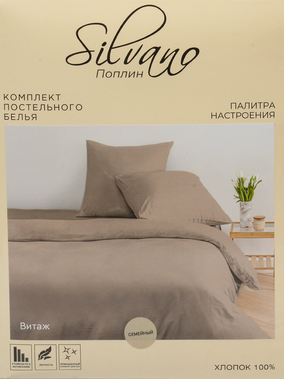 Семейное постельное белье Silvano «Витаж» из поплина: идеальный комфорт для двоих, премиальный хлопок, подарочная упаковка — выгодно для дома и на подарок.