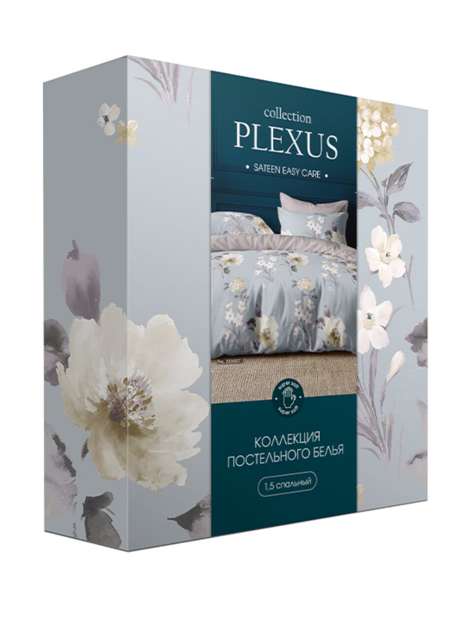 Постельное белье евро, с европростыней, простыня 216х240 см, 2 наволочки 50х70 см, пододеяльник 200х215 см, PLEXUS, полисатин, 2024857