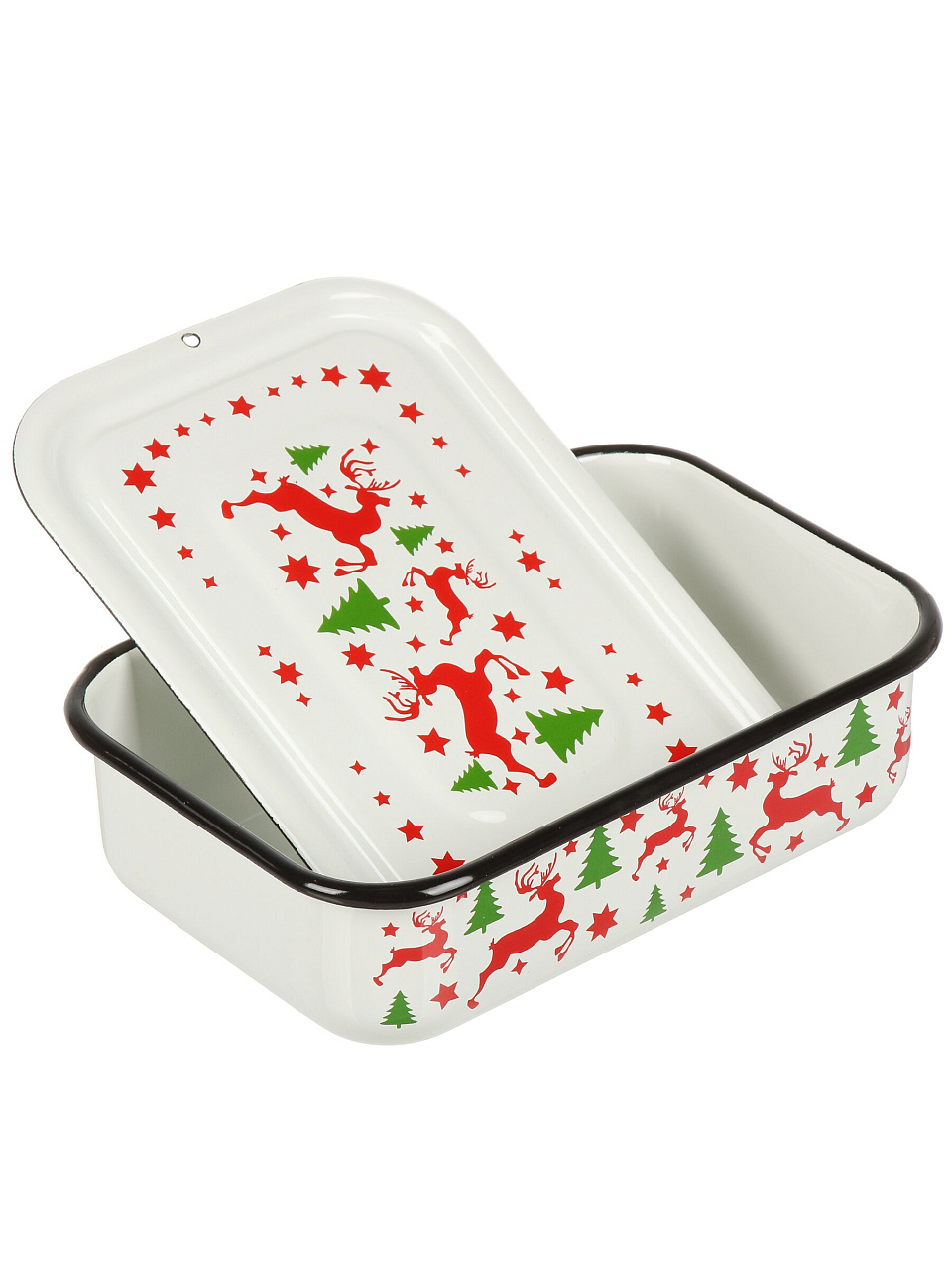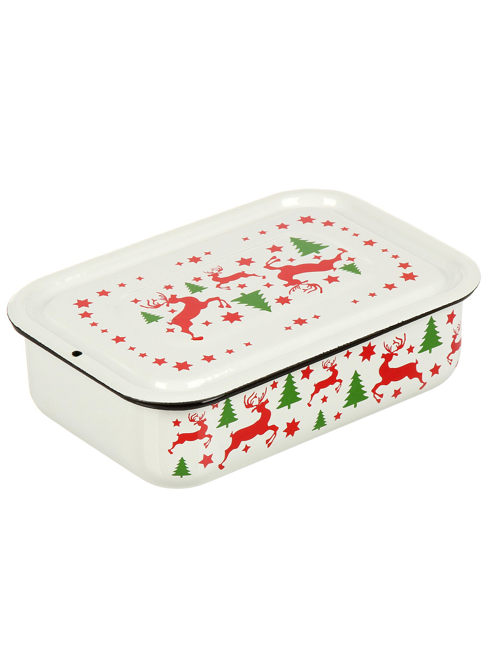 Лоток стальной эмалированный 1,5 л (22х15х6,5 см) «Керчь. Олени»: долговечность, универсальность, идеален для дома, дачи и подарка.