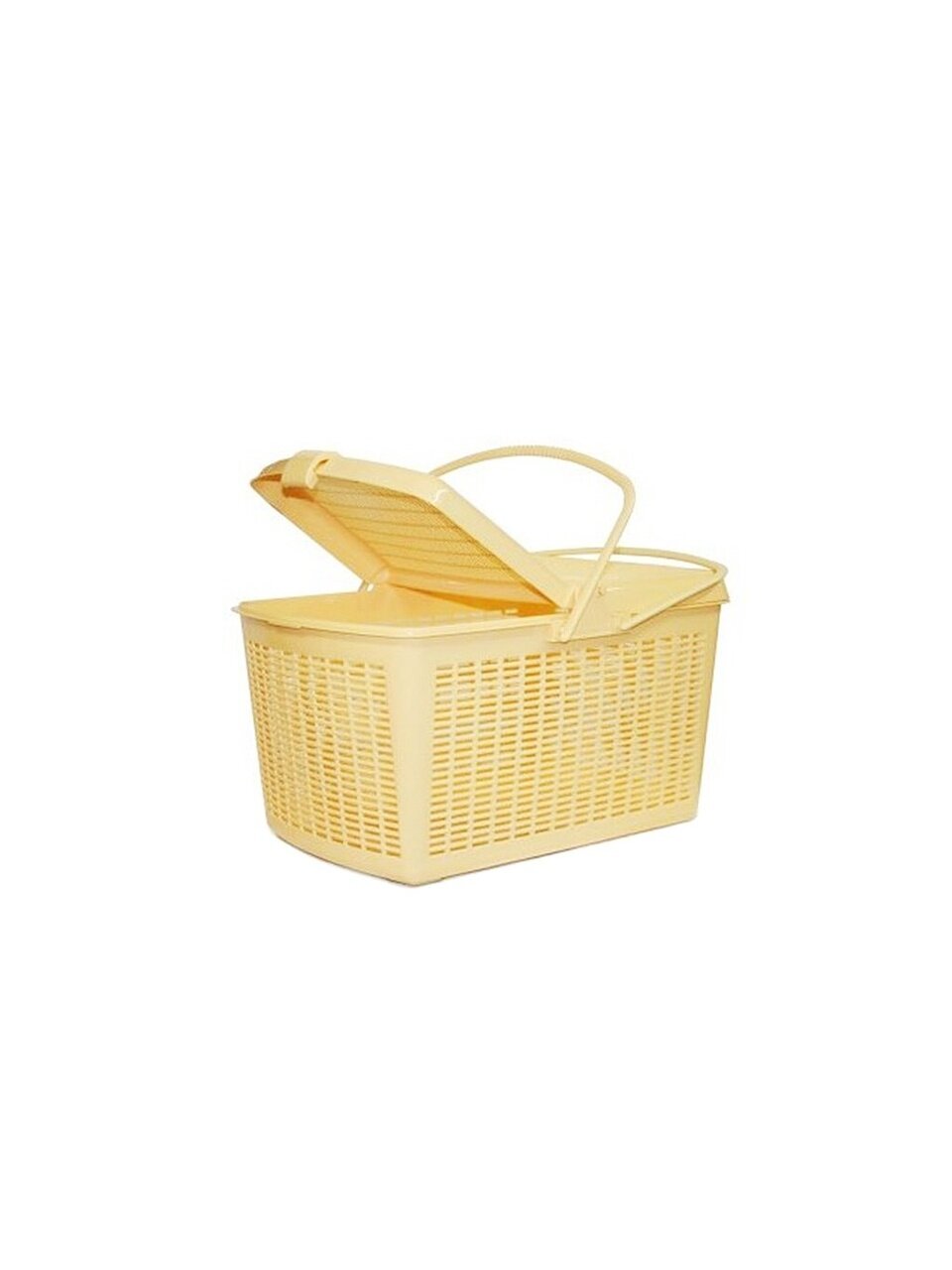 Корзинка для пикника изготовлена из прочного пластика. Внешние стенки и крышка оформлены перфорацией. Она имеет двойную крышку, открывающуюся с двух сторон, а также ручку. Идеальный вариант для пикников и отдыха на природе. Корзина очень вместительна, в нее поместится достаточное количество пищи.