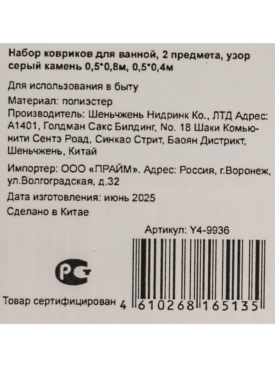 Набор ковриков для ванной с узором серый камень Y4-9936: 2 стильных влаговпитывающих коврика для уюта и чистоты, идеален для дома и дачи.