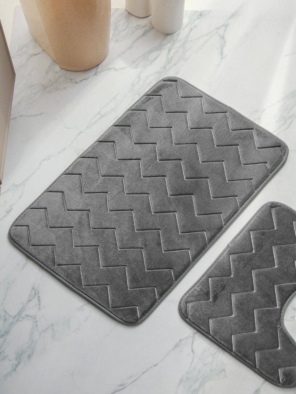 Набор ковриков для ванной 2 пр. серый: стильный узор, два размера, быстро сохнут — комфорт и уют без лишних хлопот.