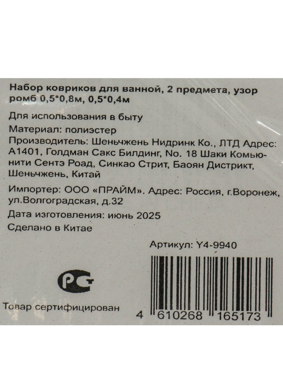 Вы можете приобрести «Набор ковриков для ванной, 2 шт, серый, Y4-9940, узор ромб» и другие товары в нашем интернет-магазине в Тамбове по низким ценам и с бесплатным самовывозом.