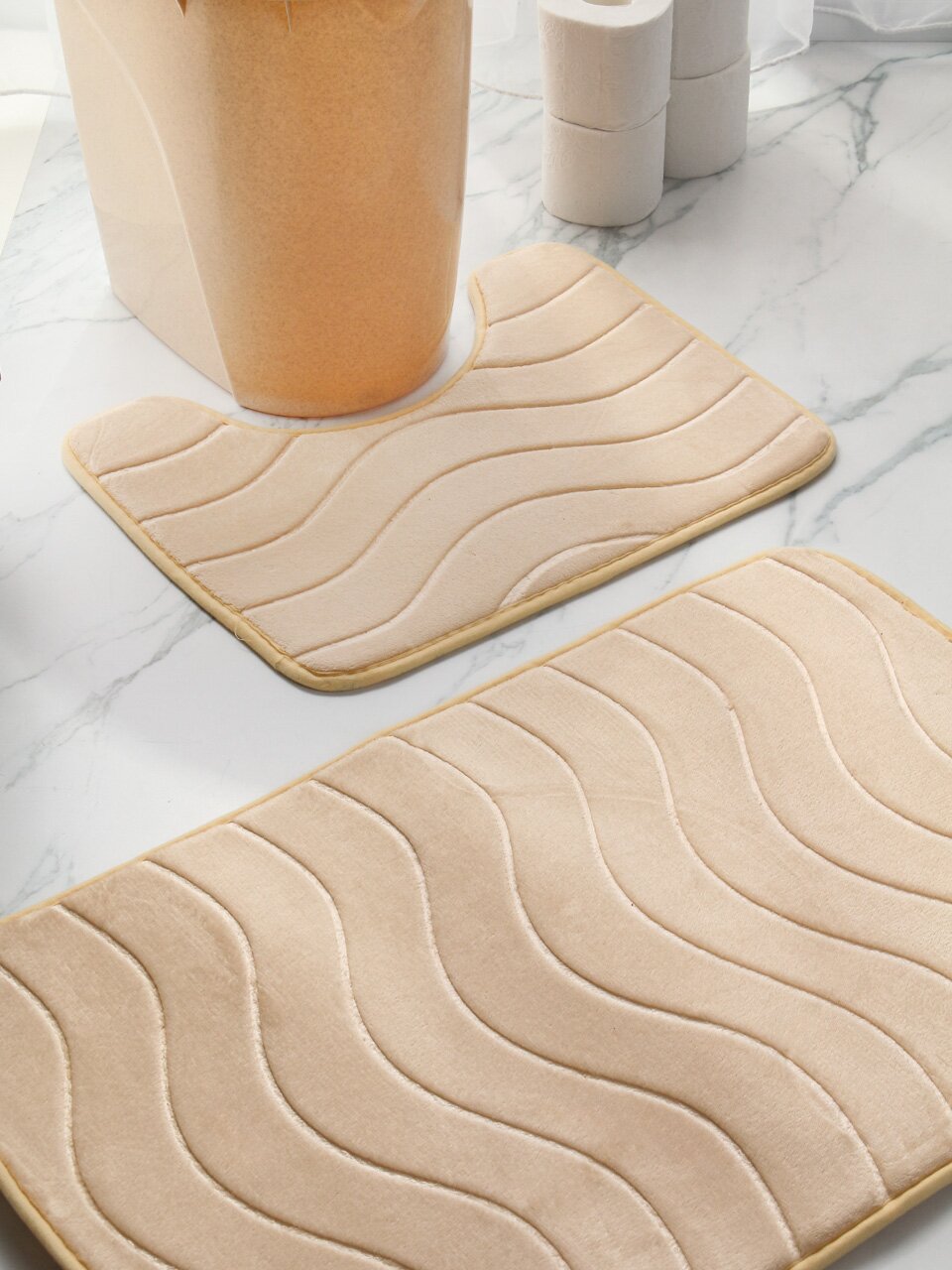 Набор велюровых ковриков для ванной 2 шт. (беж Y4-9967): мягкость, стиль и защита пола — идеальное решение для уюта в доме и на даче.