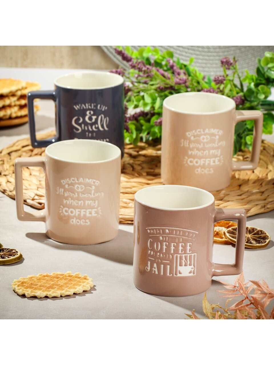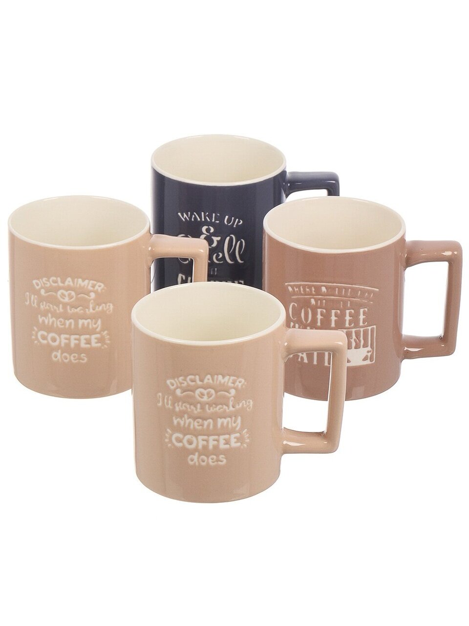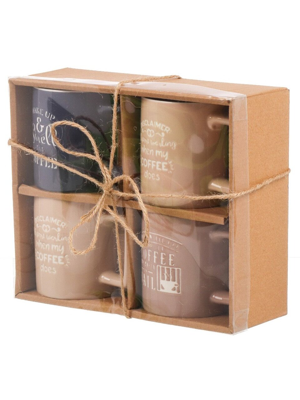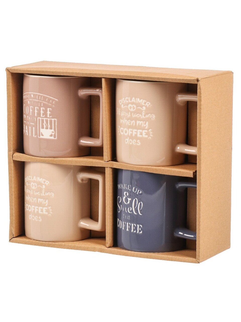 - Эксклюзивный набор из 4 разноцветных кружек с оригинальным дизайном и надписями — решение для стильной сервировки и подарка.