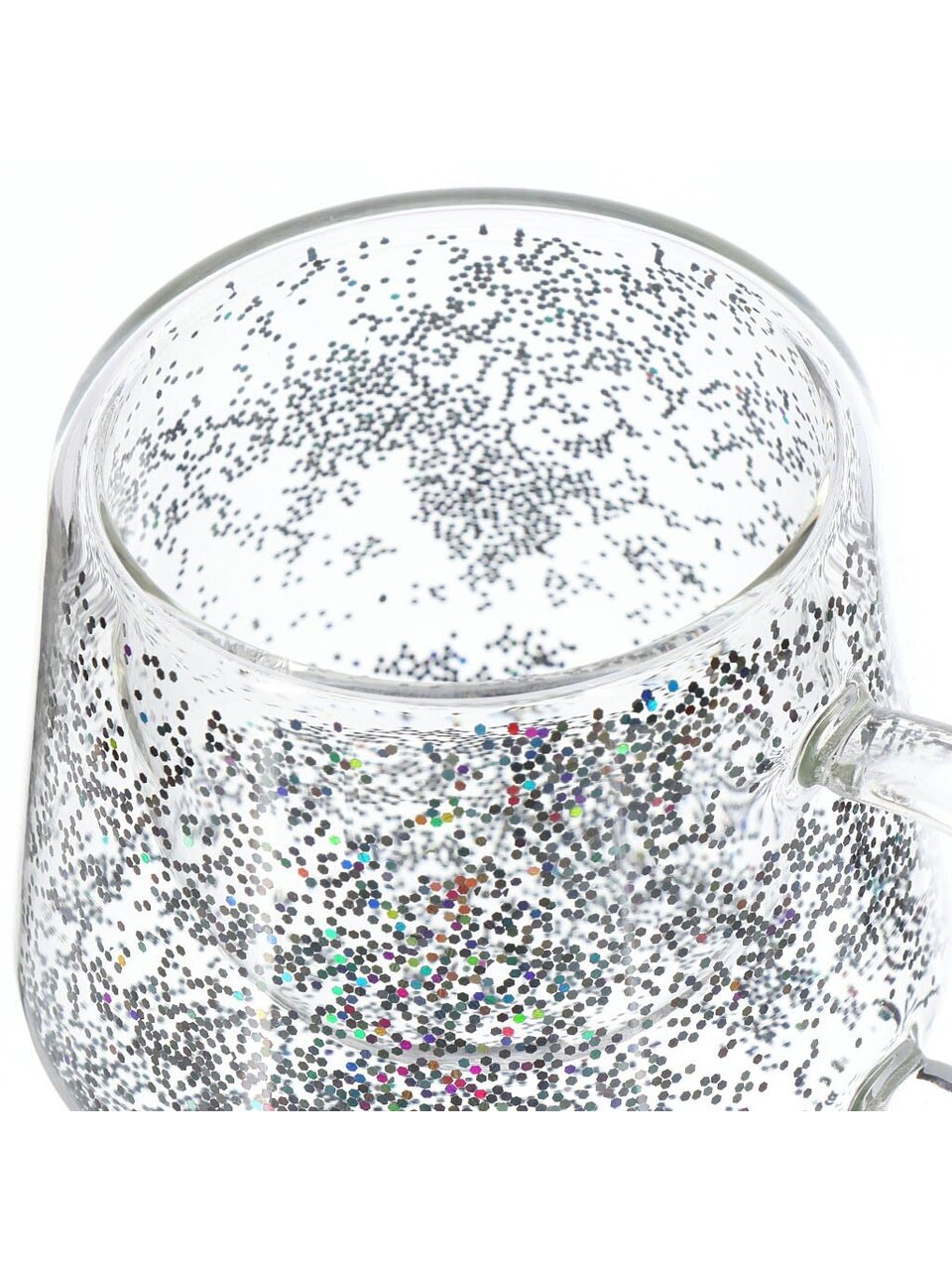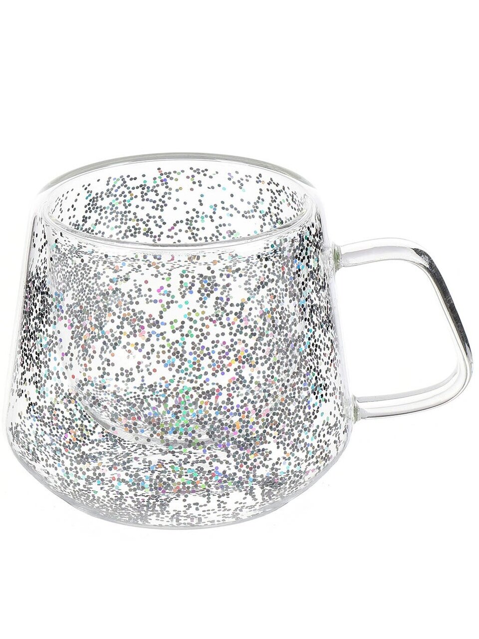 - Блестки, находящиеся между стенками, перемещаются при движении стакана.