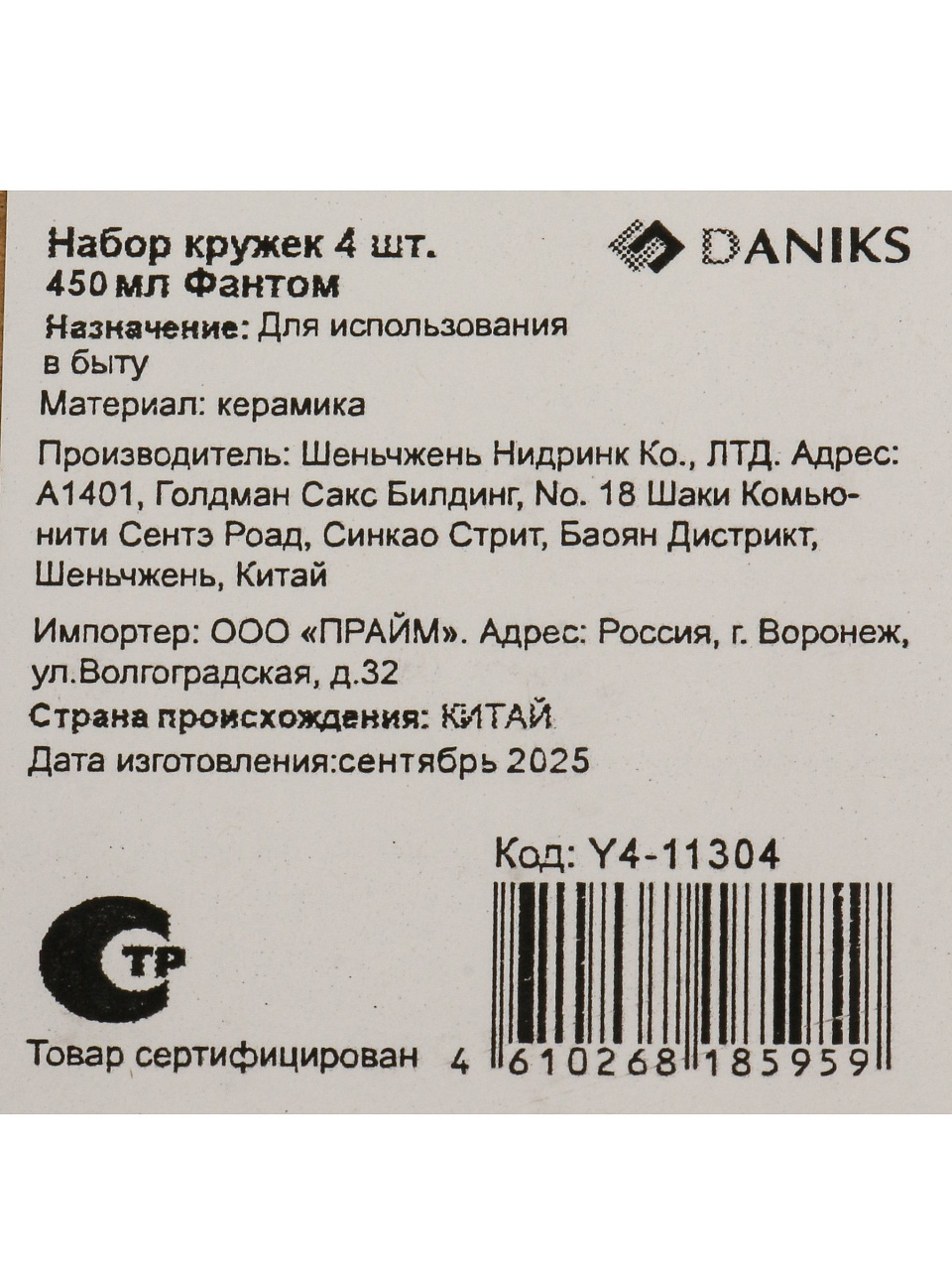 Вы можете приобрести «Набор кружек керамика, 4 шт, 450 мл, Фантом, Daniks, Y4-11304» и другие товары в нашем интернет-магазине в Ярославле по низким ценам и с бесплатным самовывозом.