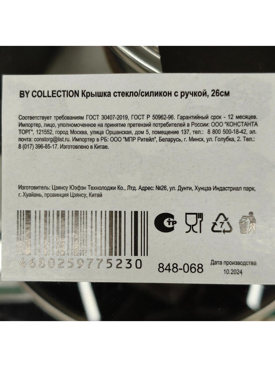 Вы можете приобрести «Крышка для посуды стекло, 26 см, BY Collection, с силиконовым ободом, ручка пластик, 848-068» и другие товары в нашем интернет-магазине в Обнинске по низким ценам и с бесплатным самовывозом.