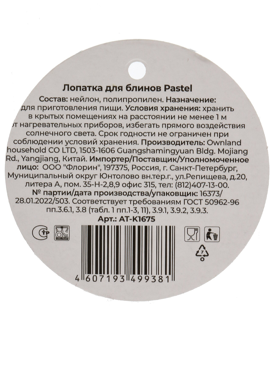 Вы можете приобрести «Лопатка для блинов, нейлон, 32 см, навеска, Atmosphere, Pastel, AT-K1675» и другие товары в нашем интернет-магазине в Обнинске по низким ценам и с бесплатным самовывозом.