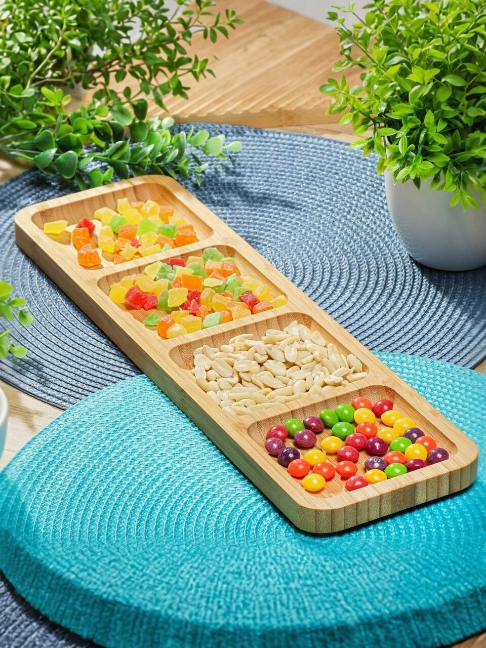 Вы можете приобрести «Менажница бамбук, 40х12х1.7 см, 4 секции, дерево/коричневая, Y4-5664» и другие товары в нашем интернет-магазине в Смоленске по низким ценам и с бесплатным самовывозом.