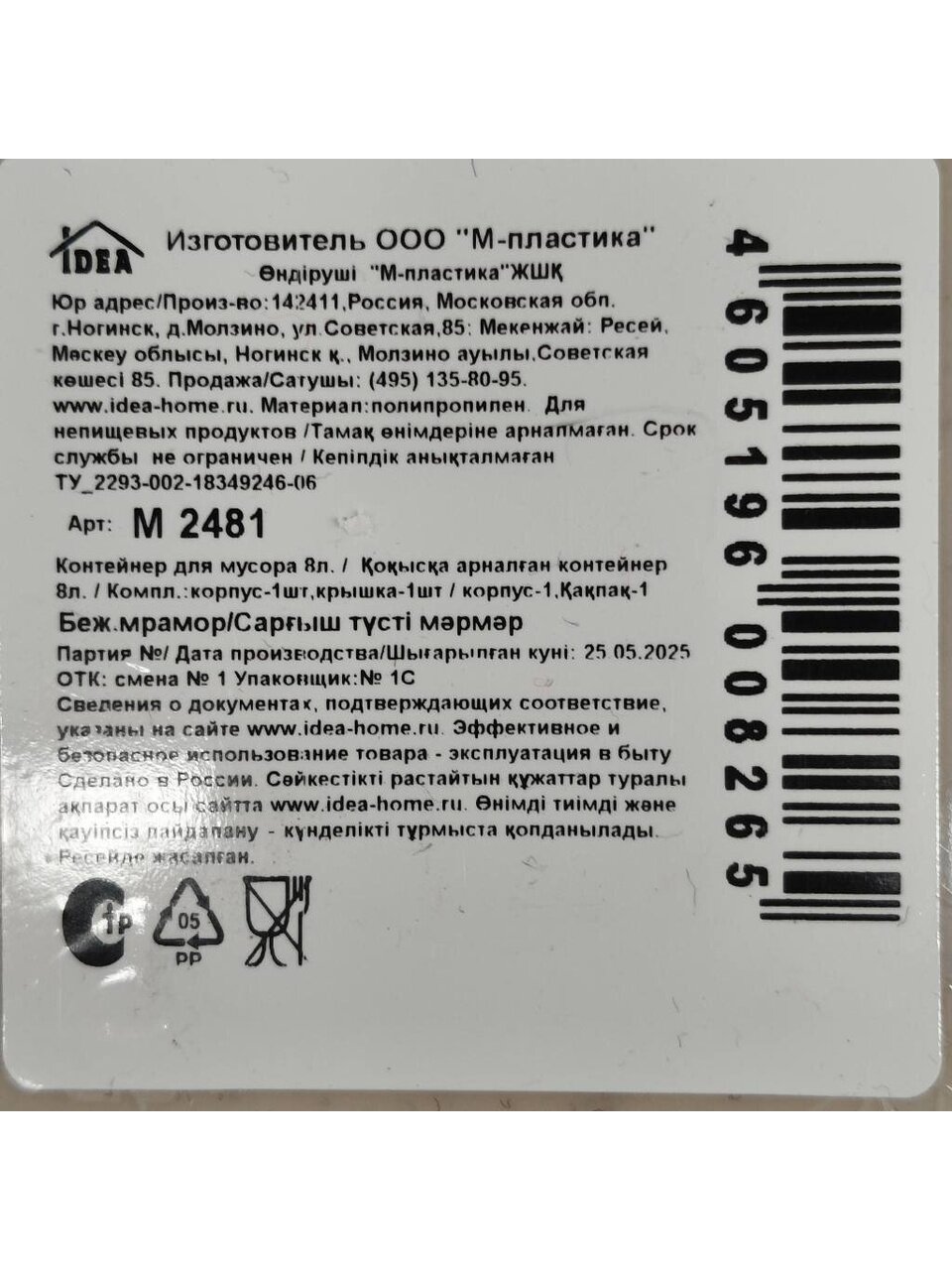 Легко очищается и долго сохраняет хороший внешний вид, а также свои функциональные качества.Вы можете приобрести «Контейнер для мусора пластик, 8 л, прямоугольный, плавающая крышка, бежевый мрамор, Idea, М2481» и другие товары в нашем интернет-магазине в Курске по низким ценам и с бесплатным самовывозом.