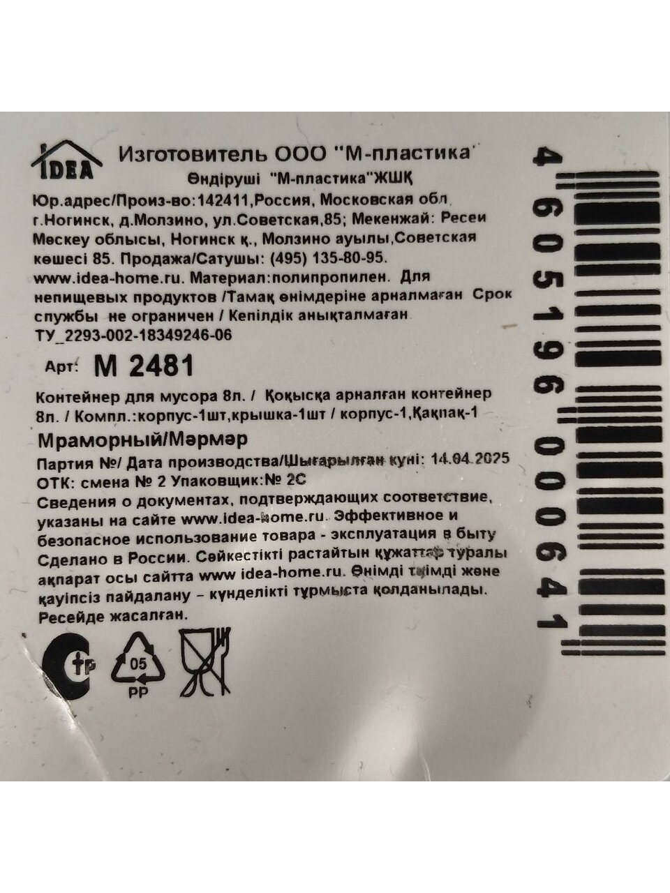 Легко очищается и долго сохраняет хороший внешний вид, а также свои функциональные качества.Вы можете приобрести «Контейнер для мусора пластик, 8 л, прямоугольный, плавающая крышка, мрамор, Idea, М2481» и другие товары в нашем интернет-магазине в Курске по низким ценам и с бесплатным самовывозом.
