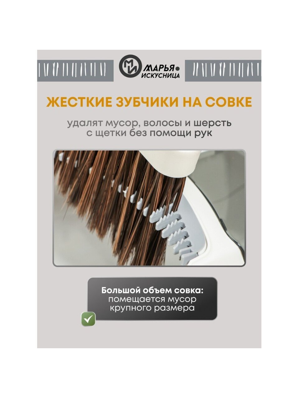 - совок с зубчиками: помогает легко очищать щетку от мусора без дополнительных усилий.