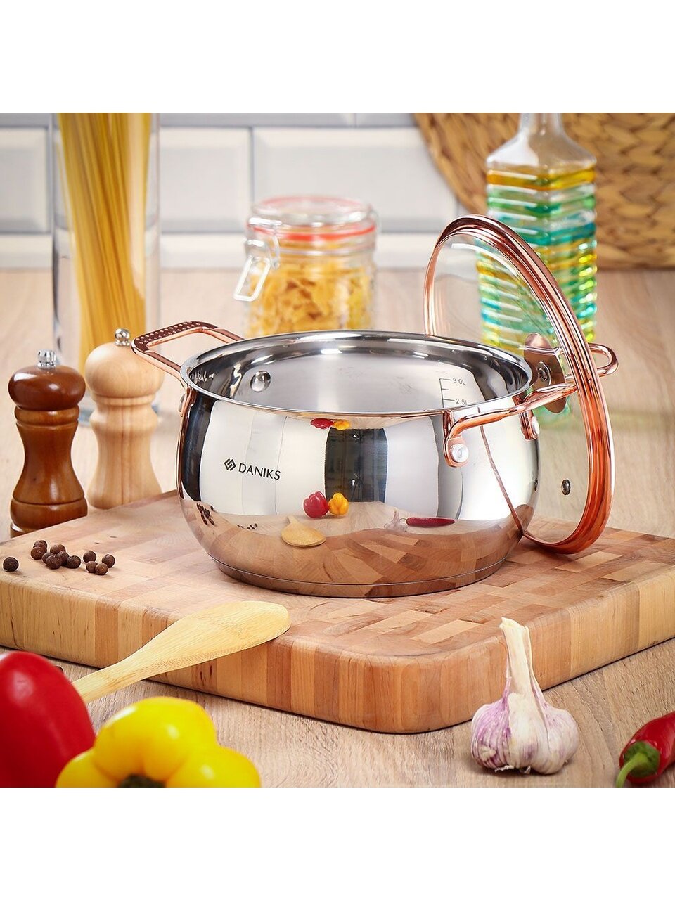Набор посуды Daniks Карлин: 12 предметов из нержавеющей стали для всех типов плит — оптимальный выбор для дома, дачи и подарка.