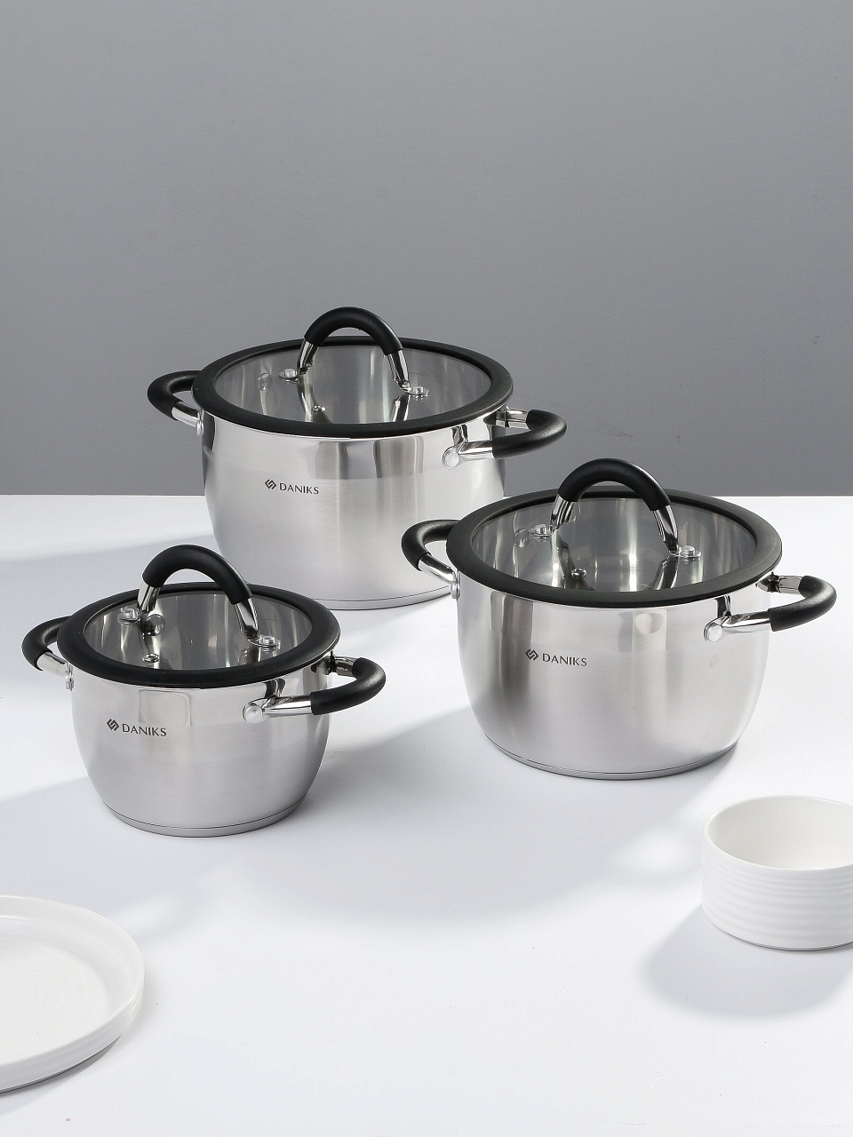 Набор кастрюль Daniks Орландо — это выгодное решение для тех, кто ищет, какую посуду выбрать для индукционной плиты или как купить недорого набор посуды для дома и дачи. Антикоррозийная нержавеющая сталь устойчива к деформации и легко очищается, а прозрачные крышки позволяют контролировать процесс приготовления без лишних усилий. Благодаря универсальному дизайну и трём разным объёмам, этот комплект отлично подходит для приготовления супов, гарниров и даже заготовок.