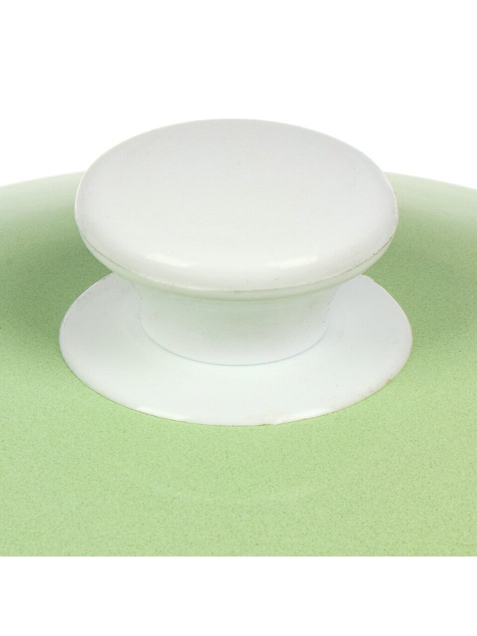 Часто спрашивают: «Чем отличается эмалированная сталь от обычной?» — Эмаль защищает от ржавчины и упрощает уход, а салатовый цвет освежит интерьер кухни.
