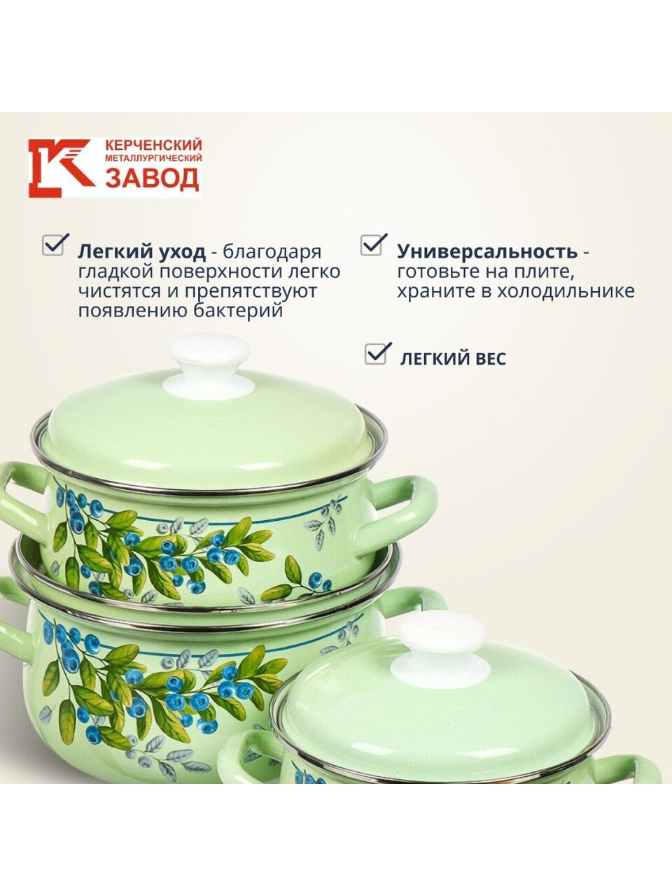 Вы можете приобрести «Набор посуды эмалированная сталь, 6 предметов, кастрюли 1.5, 2, 3 л, Керченский металлургический завод, Черника-1, салатовый» и другие товары в нашем интернет-магазине в Железногорске по низким ценам и с бесплатным самовывозом.