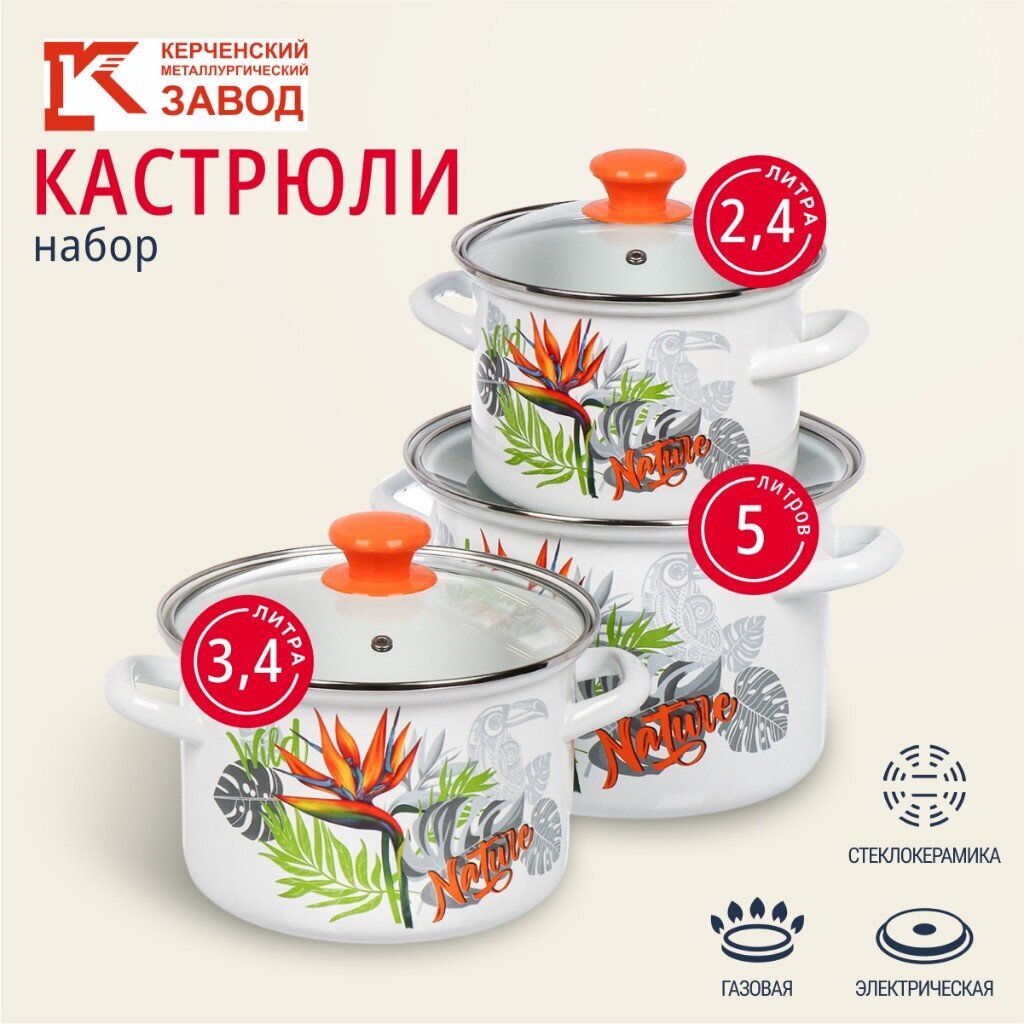 Вы можете приобрести «Набор посуды эмалированная сталь, 6 предметов, кастрюли 2.4,3.4,5 л, индукция, Керченский металлургический завод, Рио-5-1-Люкс, белый» и другие товары в нашем интернет-магазине в Краснодаре по низким ценам и с бесплатным самовывозом.