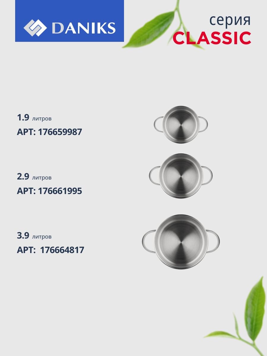 Часто спрашивают, подходит ли этот набор для дачи или как использовать кастрюли без антипригарного покрытия — ответ: посуда Daniks SD-6 не требует особого ухода, не впитывает запахи и легко очищается. Объёмы 1.9, 2.9 и 3.9 литра позволяют варить супы, каши или готовить гарниры на разное количество персон, а отсутствие антипригарного слоя исключает риск повреждения покрытия при использовании металлических ложек.