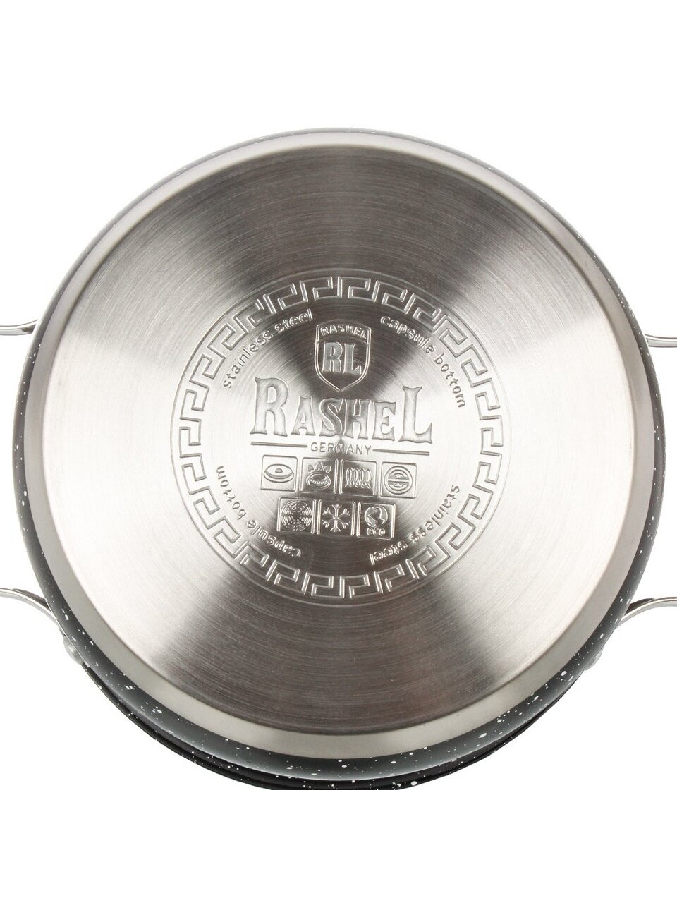 Да, набор RasheL совместим с индукционными, газовыми, электрическими и стеклокерамическими плитами благодаря ферромагнитному дну из нержавеющей стали.