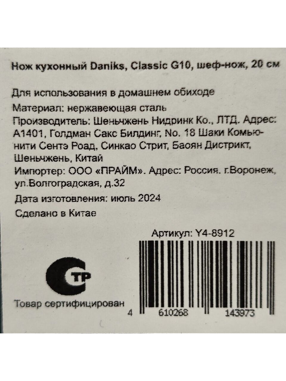 Вы можете приобрести «Нож кухонный Daniks, Classic G10, шеф-нож, нержавеющая сталь, 20 см, рукоятка дерево, Y4-8912» и другие товары в нашем интернет-магазине в Смоленске по низким ценам и с бесплатным самовывозом.