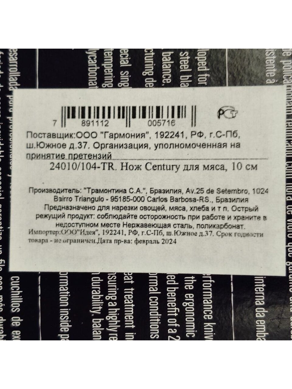 Вы можете приобрести «Нож кухонный Tramontina, Century, для мяса, нержавеющая сталь, 10 см, рукоятка пластик, 24010/104-TR» и другие товары в нашем интернет-магазине в Астрахани по низким ценам и с бесплатным самовывозом.
