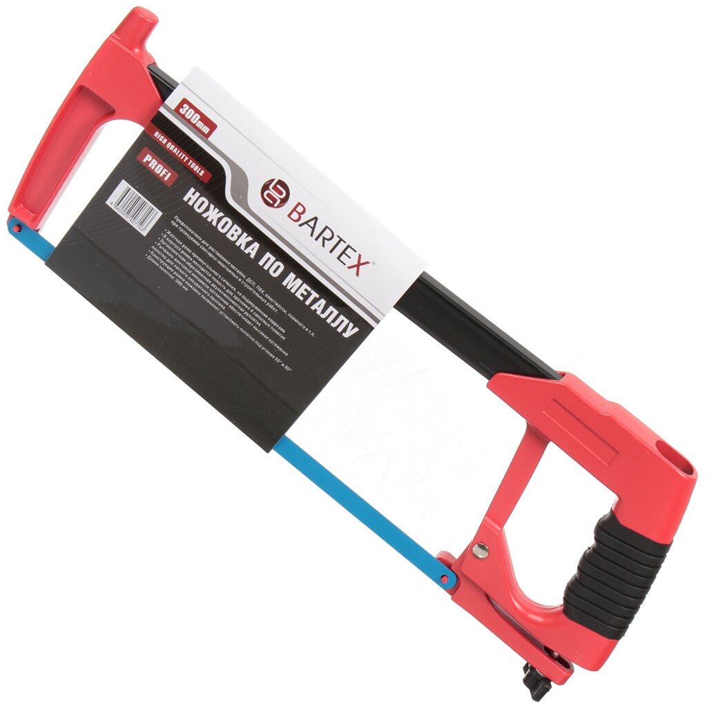 Ножовка по металлу Bartex обязательно пригодится в хозяйстве, будь Вы профессионал или домашний мастер. Работать с ней невероятно комфортно. Благодаря рычажно-винтовому механизму натяжения аккуратный пропил легко получится даже у новичка. Удобная прорезиненная рукоятка не допустит выскальзывания инструмента. Спустя продолжительное время работ Ваши руки не почувствуют усталости благодаря комфортному захвату.