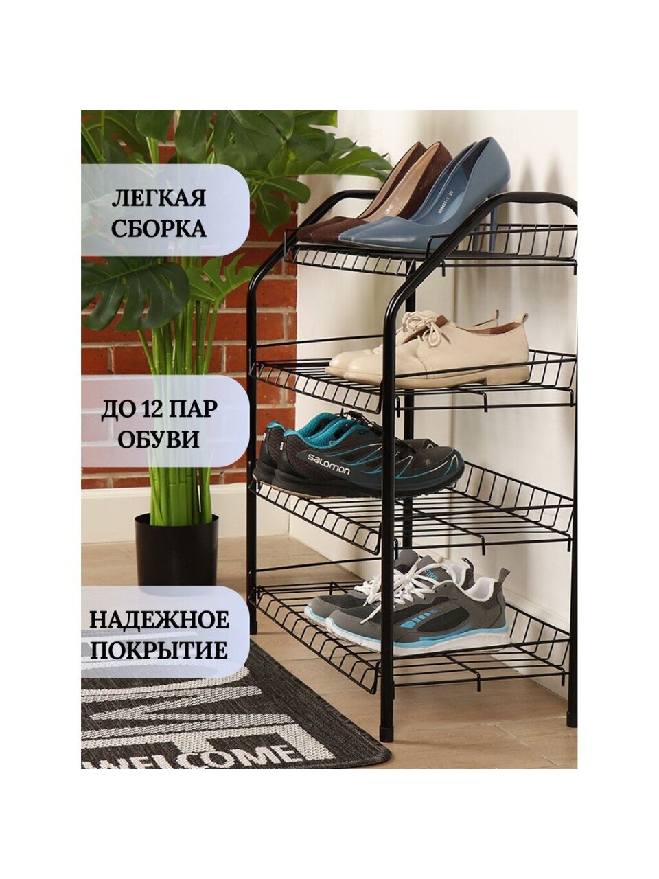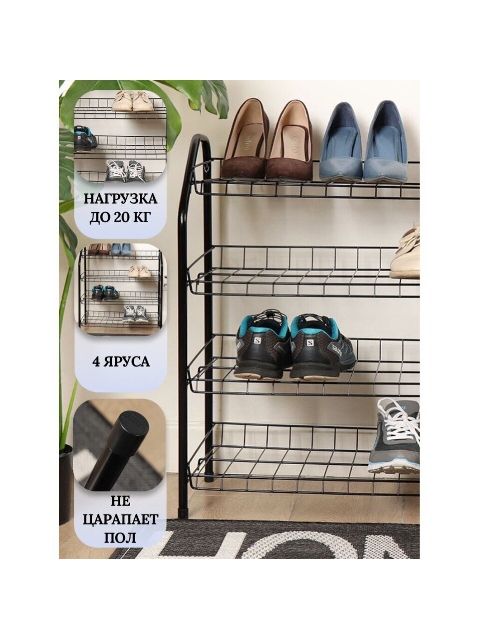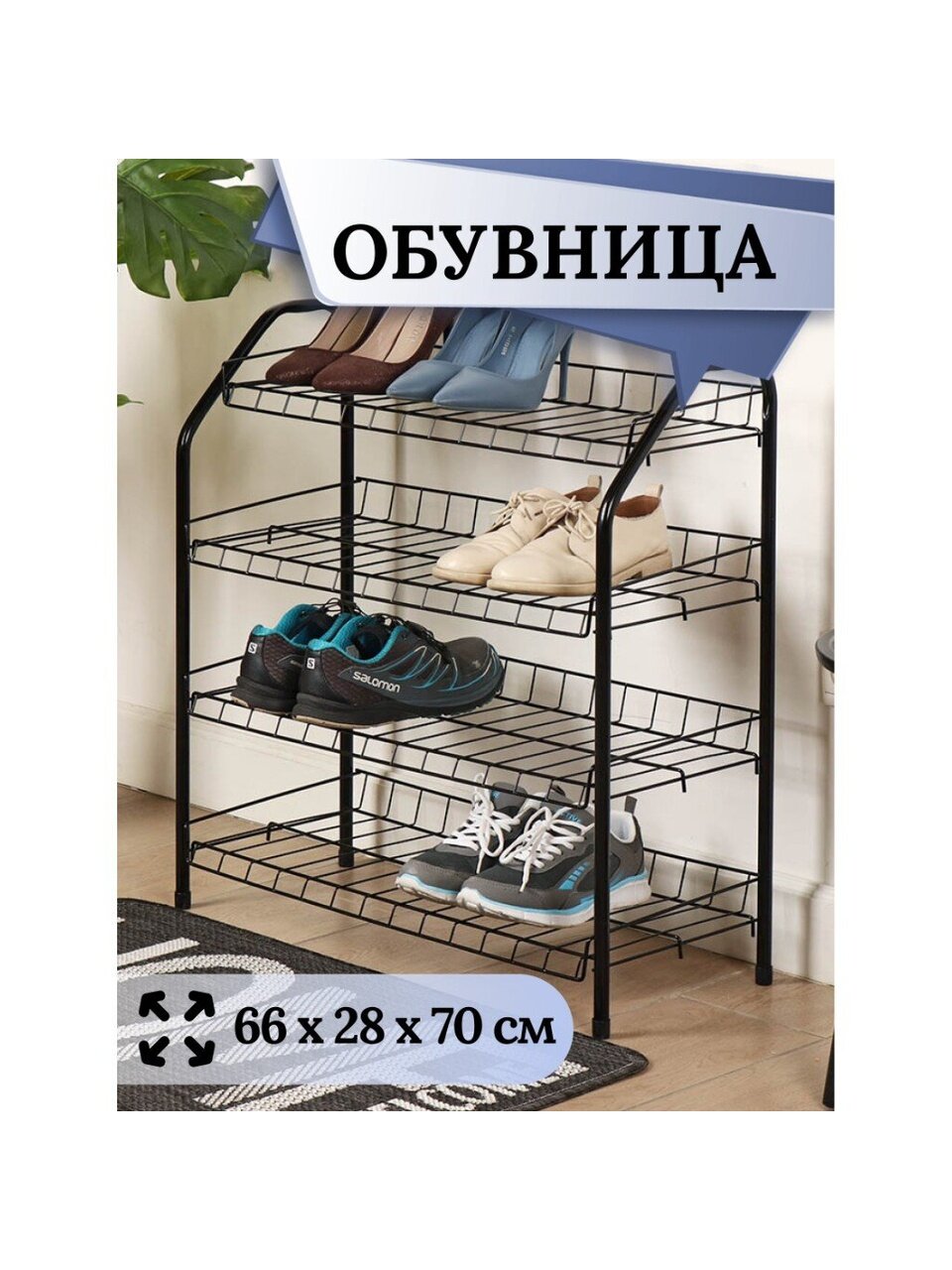 Вы можете приобрести «Полка для обуви, металл, 4 секции, 66х28х70 см, разборная, черная, Nika, ЭТ1/Ч» и другие товары в нашем интернет-магазине в Ельце по низким ценам и с бесплатным самовывозом.