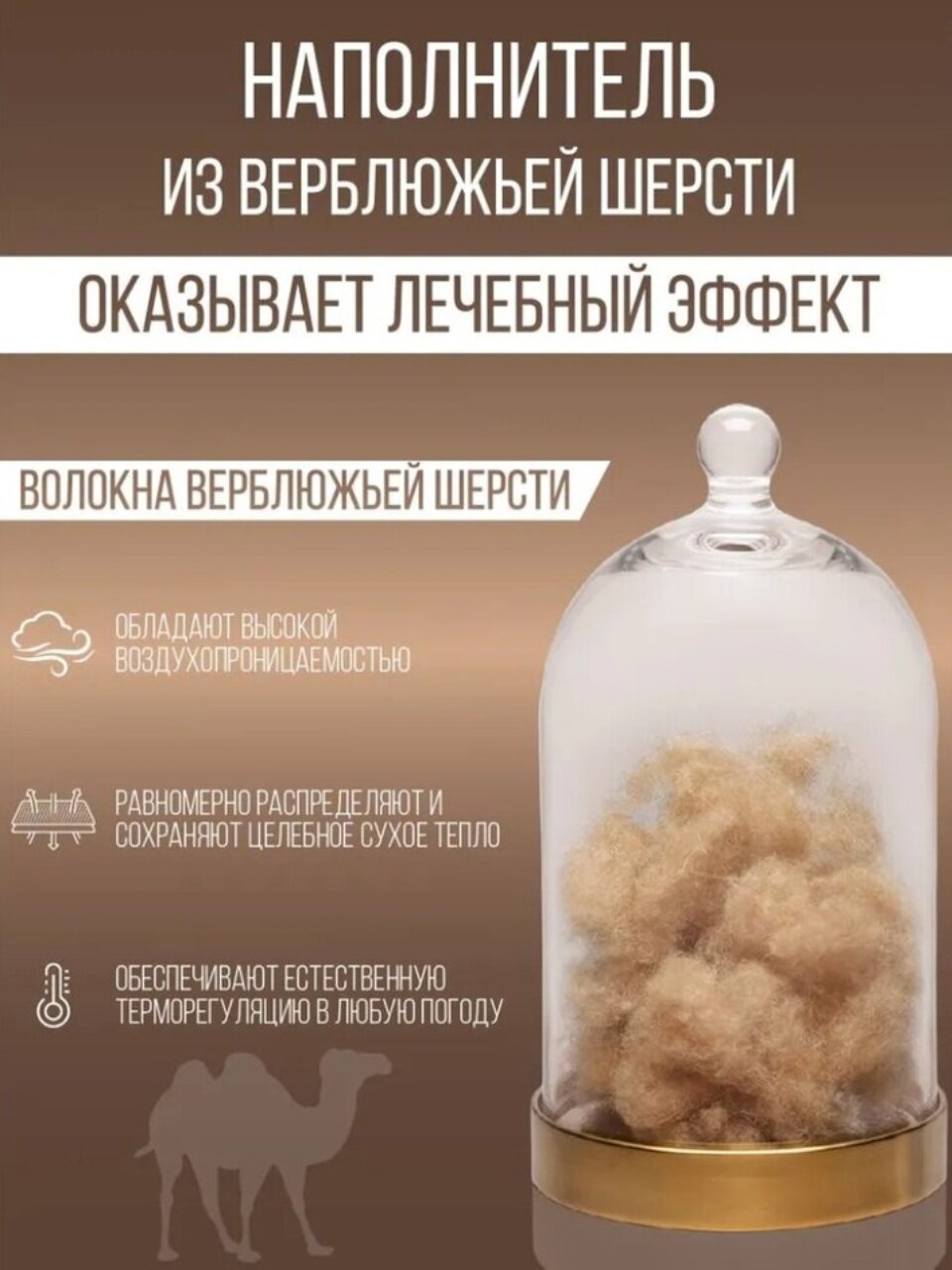 - Натуральная верблюжья шерсть — поддерживает оптимальный микроклимат, не вызывает аллергию