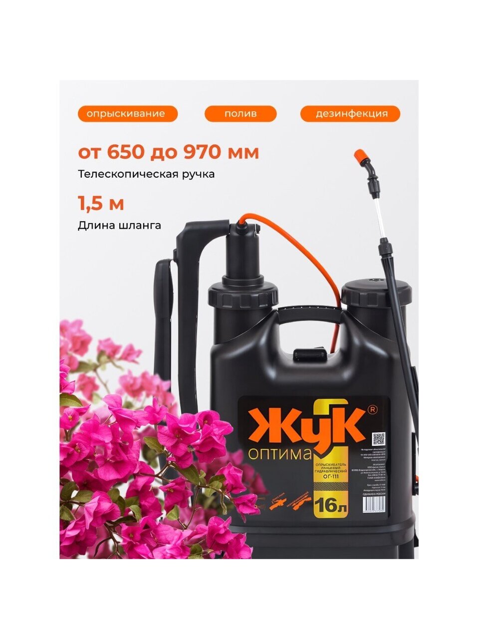 Вы можете приобрести «Опрыскиватель садовый Жук, 16 л, пластик, ранцевый, телескопическая штанга, 650-970 мм, Оптима, ОГ-111 7275-00» и другие товары в нашем интернет-магазине в Воронеже по низким ценам и с бесплатным самовывозом.