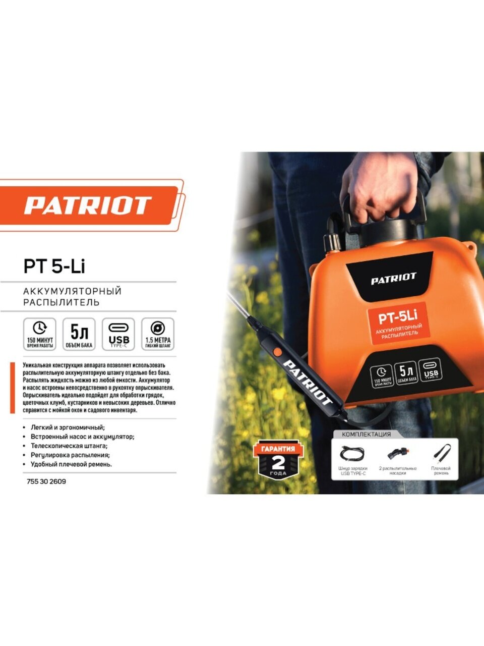 Представляем вашему вниманию инновационный опрыскиватель садовый Patriot PT-5Li, который станет незаменимым помощником в вашем саду. Этот аккумуляторный опрыскиватель сочетает в себе передовые технологии и удобство использования, что делает его отличным выбором для всех, кто ценит комфорт и эффективность в уходе за растениями.