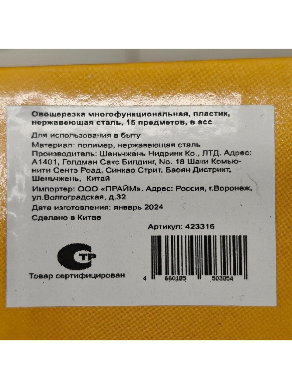 Вы можете приобрести «Овощерезка многофункциональная, пластик, нержавеющая сталь, 15 предметов, в ассортименте, Y4-6211» и другие товары в нашем интернет-магазине в Армавире по низким ценам и с бесплатным самовывозом.