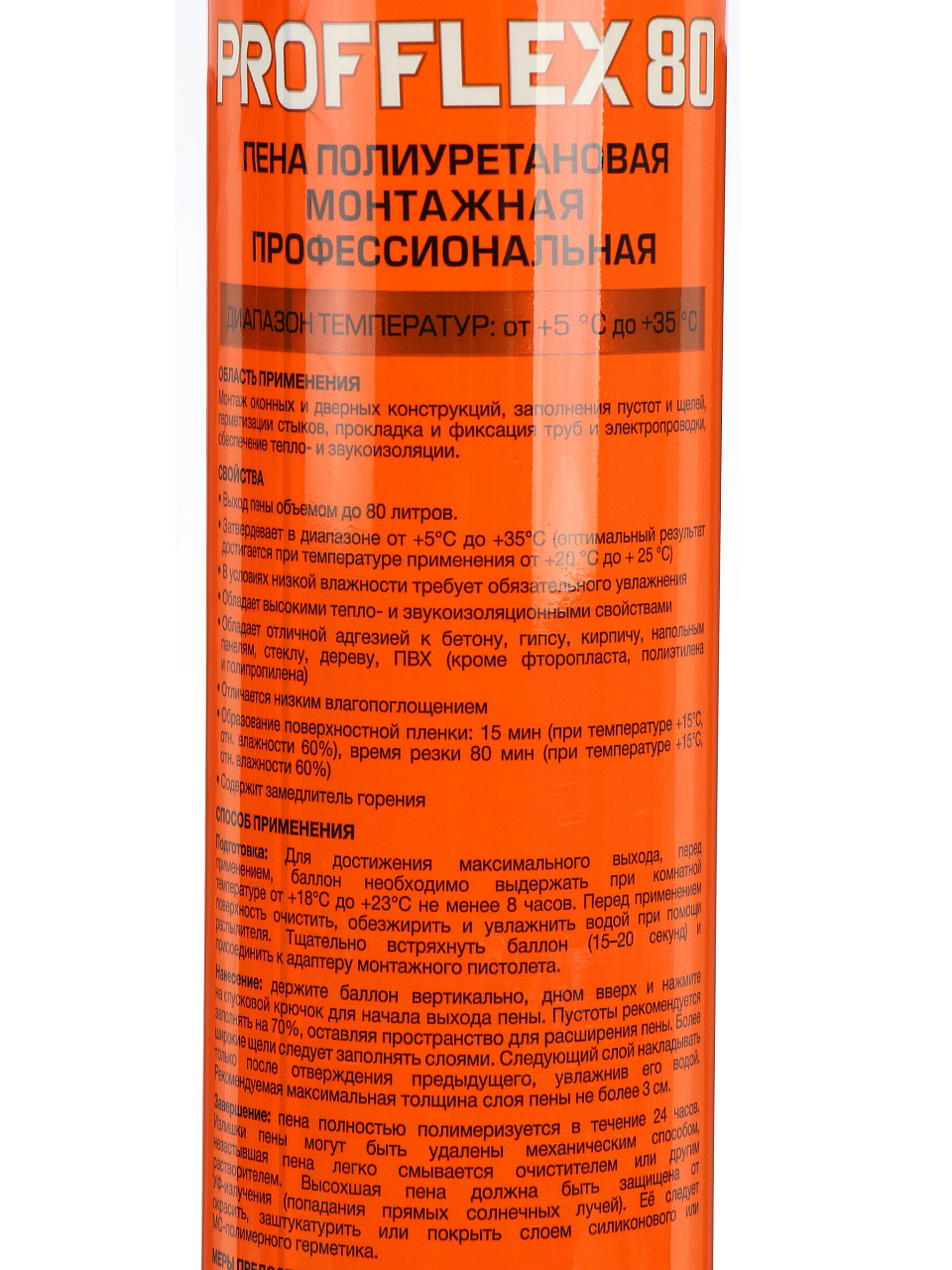 - Максимальный выход — до 80 л монтажной пены из одного баллона, что выгодно отличает Profflex среди аналогов