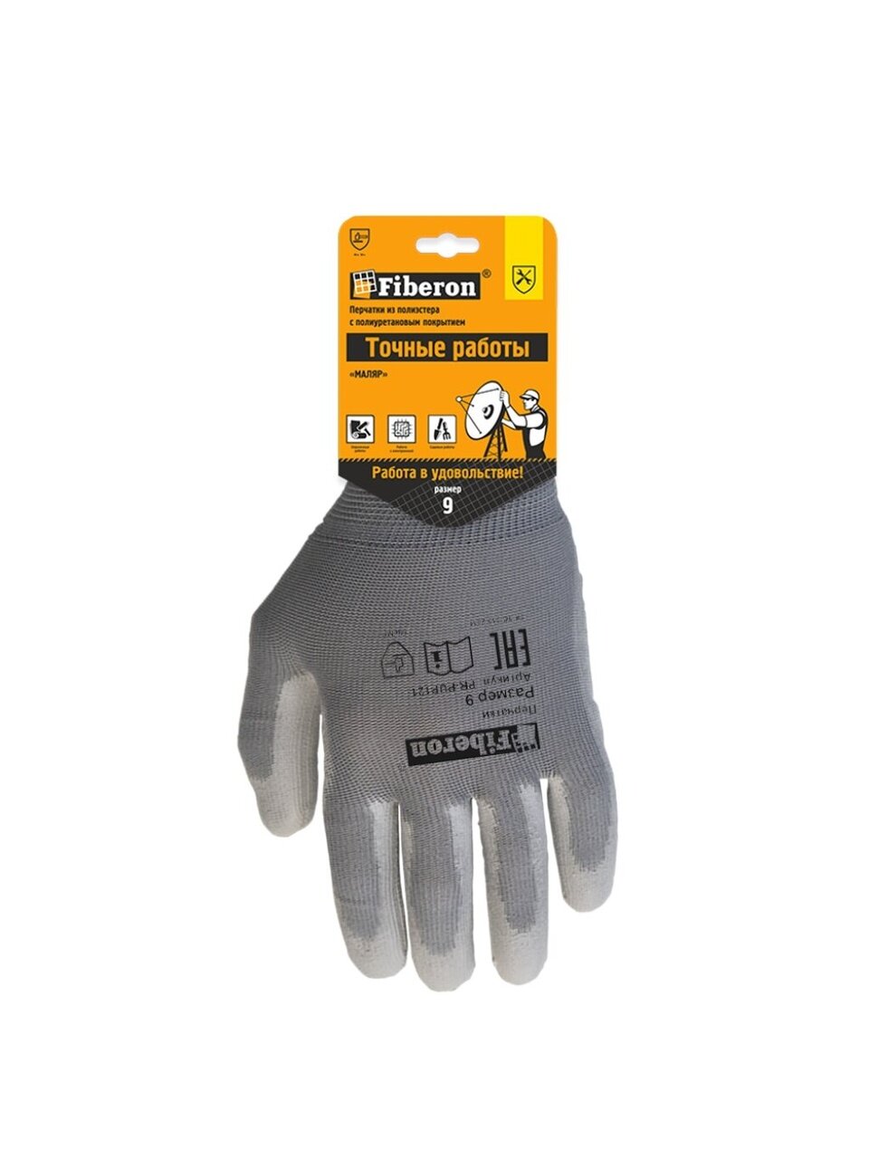 Перчатки Fiberon с полиуретановым обливом — надежный выбор для строительных, садовых и сборочных работ. Серый цвет основы, универсальный размер 9 (L), прочный полиэстер и частичное покрытие обеспечивают комфорт, долговечность и защиту рук. Европодвес для удобства хранения. Идеальны для стекольщиков, ухода за кустарниками и универсального применения.