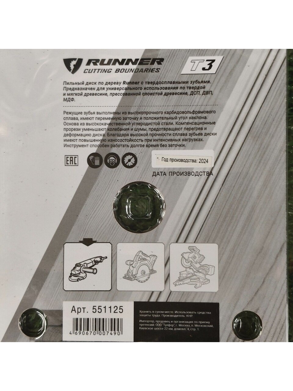 Вы можете приобрести «Диск пильный по дереву, Runner, 125 мм, 3 зуба, для УШМ, 551125» и другие товары в нашем интернет-магазине в Белгороде по низким ценам и с бесплатным самовывозом.