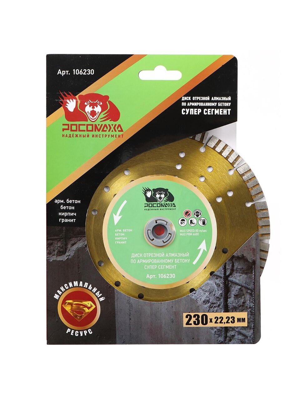Диск отрезной алмазный по армированному бетону, Росомаха, Супер Сегмент, 230х2.8 мм, сухой рез, 106230